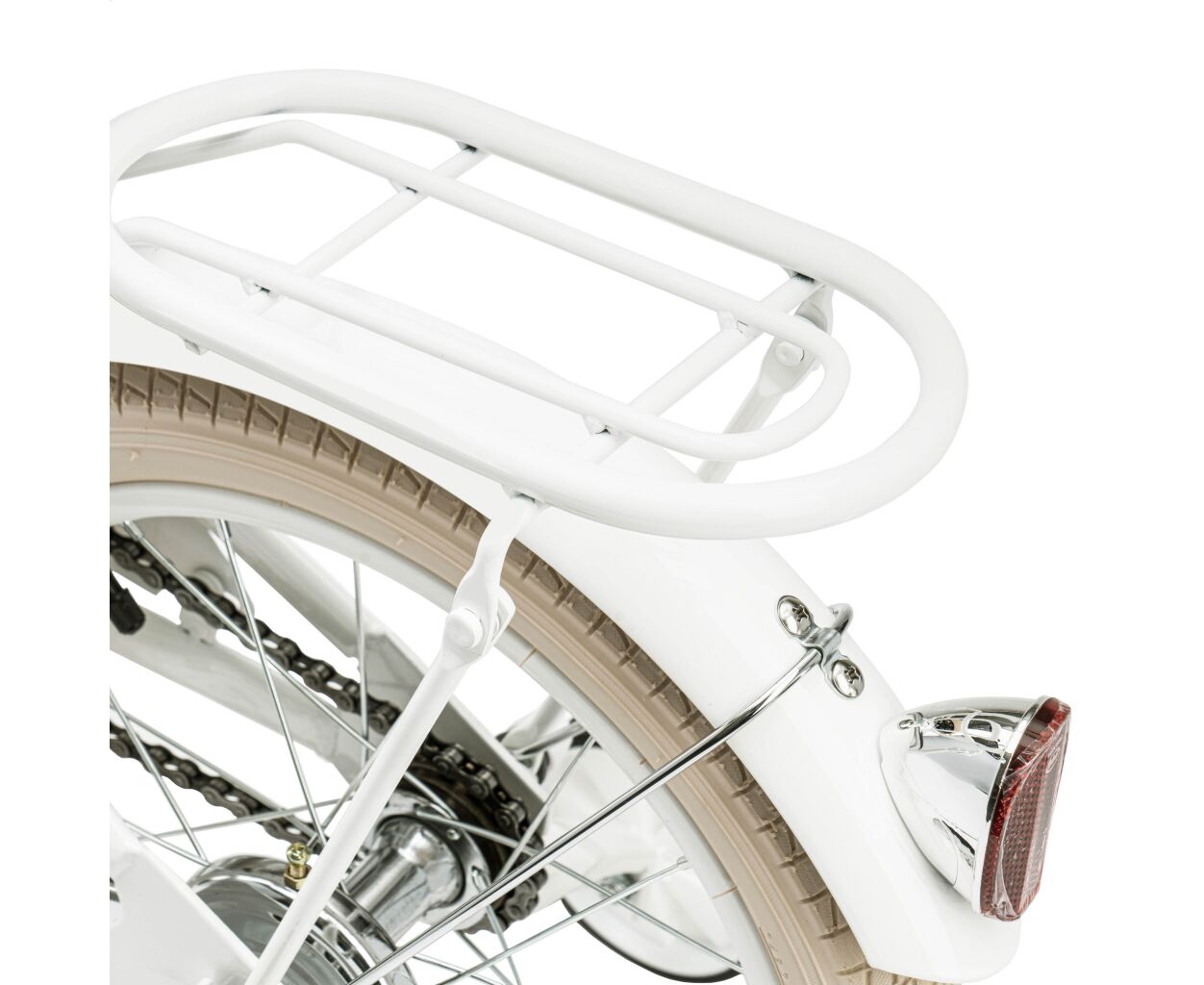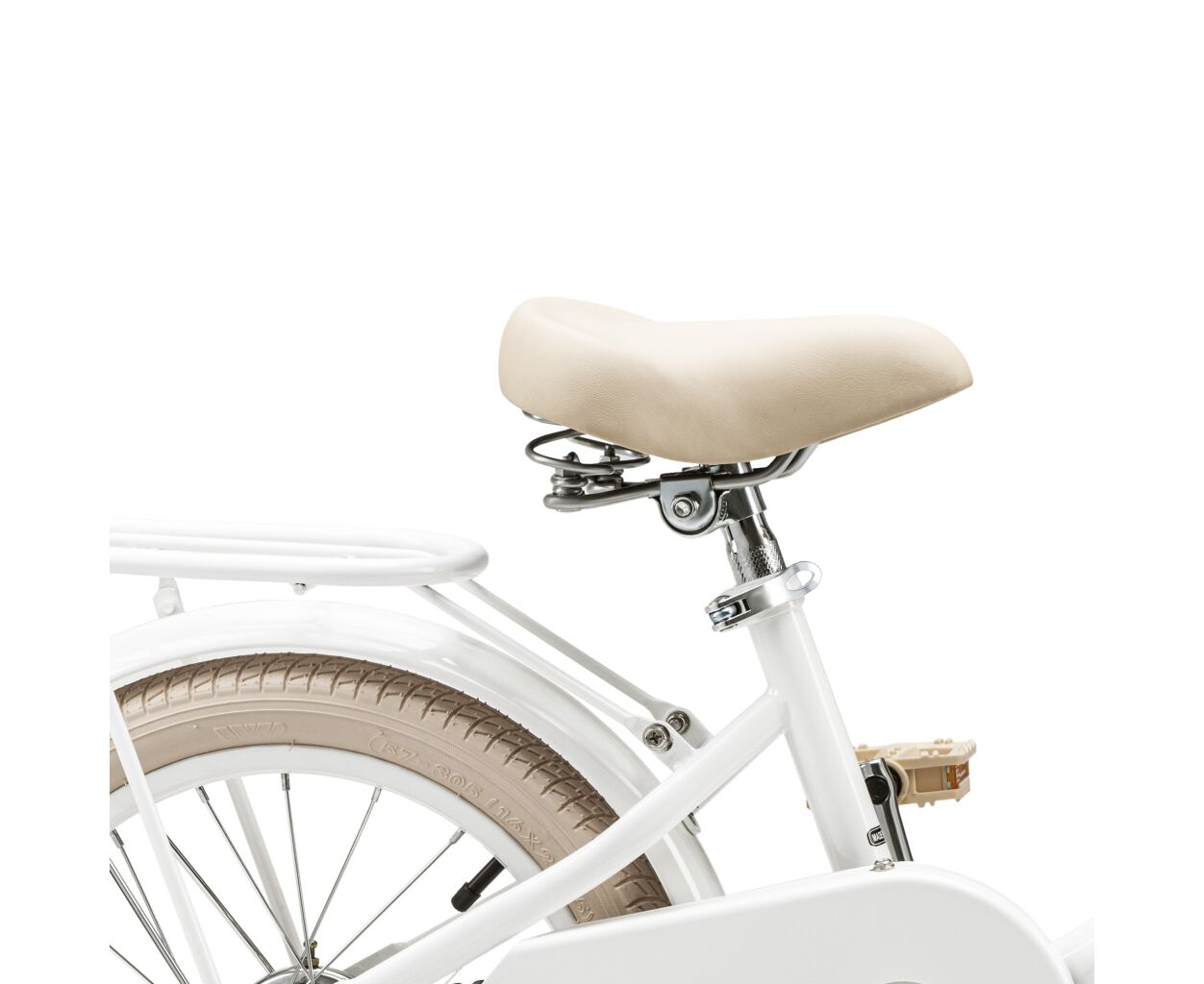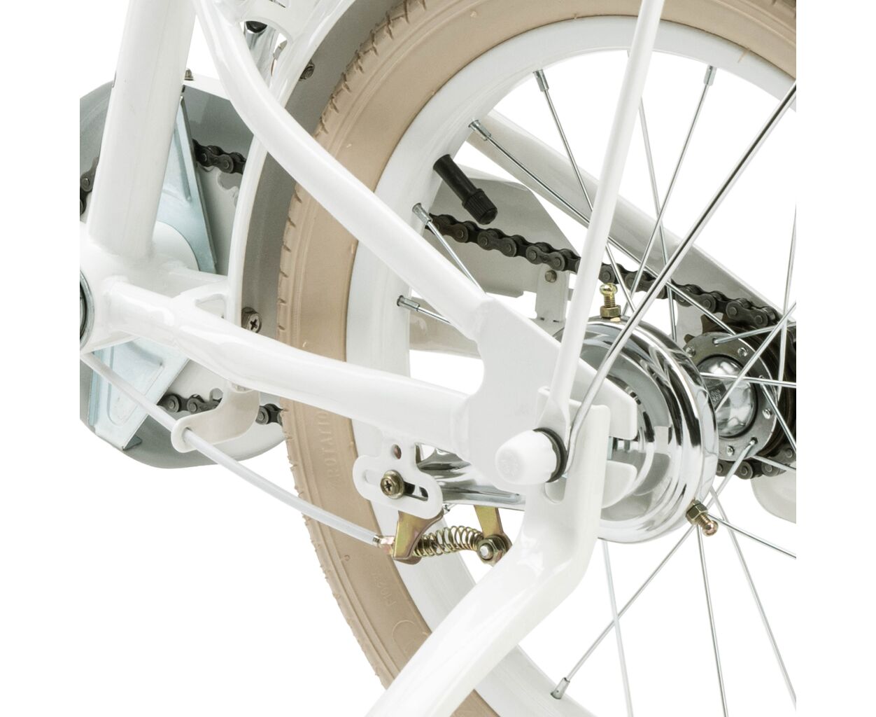 Вид - двухколесные, Возрастная группа - от 3 лет, Диаметр колес - 16" (40.5 см), материал колес - резина, белый, рама - металл, козырек - нет