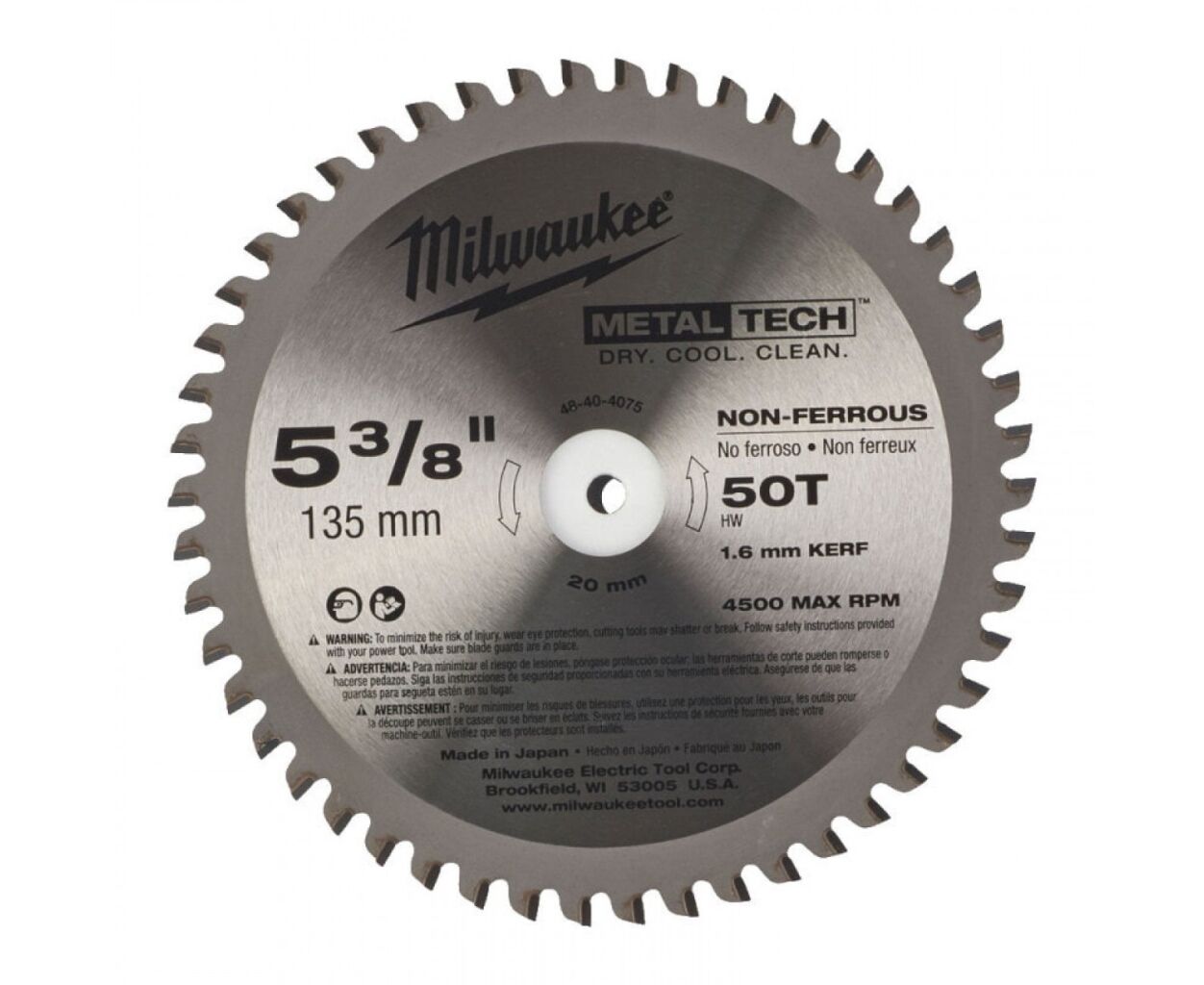 Диск пильный Milwaukee по металлу, 135х20мм, 50 зуб. (48404075)