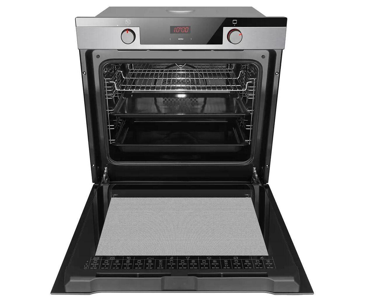 Рефлекторное внутреннее стекло усиливает теплоизоляцию и способствует равномерному распределению тепла, а съемная дверца с системой легкой очистки значительно упрощает уход за техникой. Благодаря автоматическому отключению после завершения программы, вы можете оставить духовку работать без постоянного присмотра – это придает спокойствие и гарантирует безопасность.