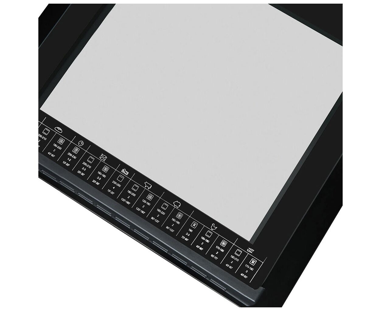 Механическое управление придает простоту и интуитивность в использовании. Вы легко можете выбрать нужный режим и отрегулировать температуру в соответствии с рецептом. Внутренняя сторона дверцы украшена рецептами, что является полезной подсказкой для быстрого приготовления популярных блюд.