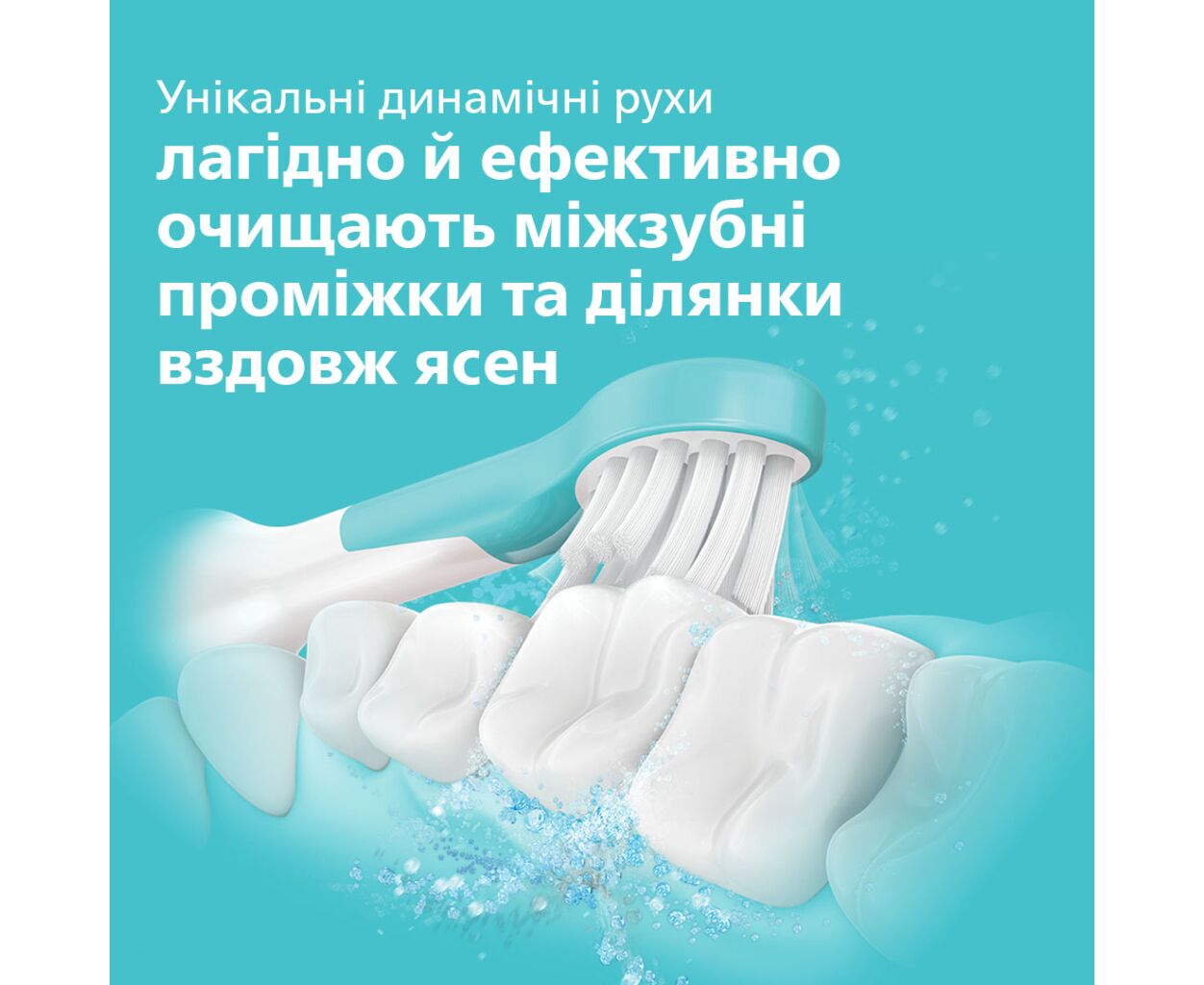 Электрическая Sonicare For Kids имеет специальную щетинку повышенной мягкости, две разных насадки, пригодна для ежедневного использования.