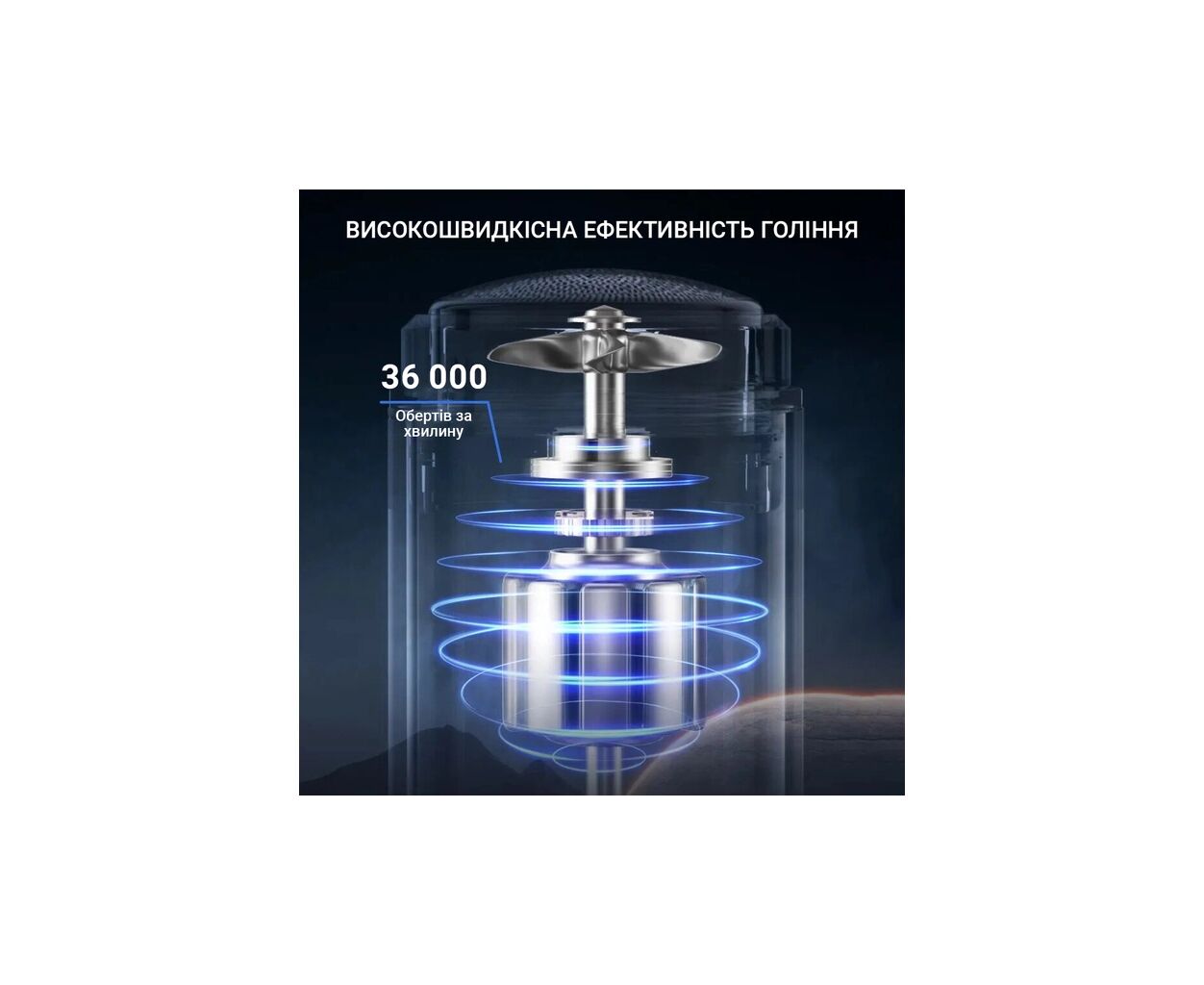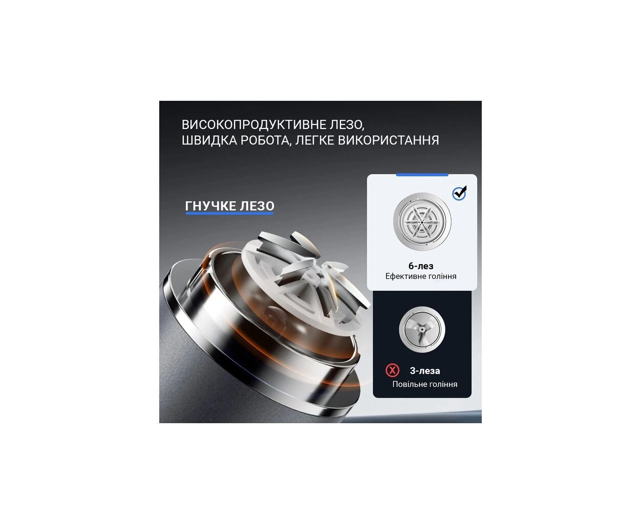 С уникальным металлическим стилем, эта электробритва привлекает внимание не только своей эффективностью, но и элегантным дизайном. Благодаря 6 лезвиям, она способна эффективно срезать каждый волосок со скоростью до 36000 оборотов в минуту, обеспечивая вам чистое и гладкое бритье каждый раз.