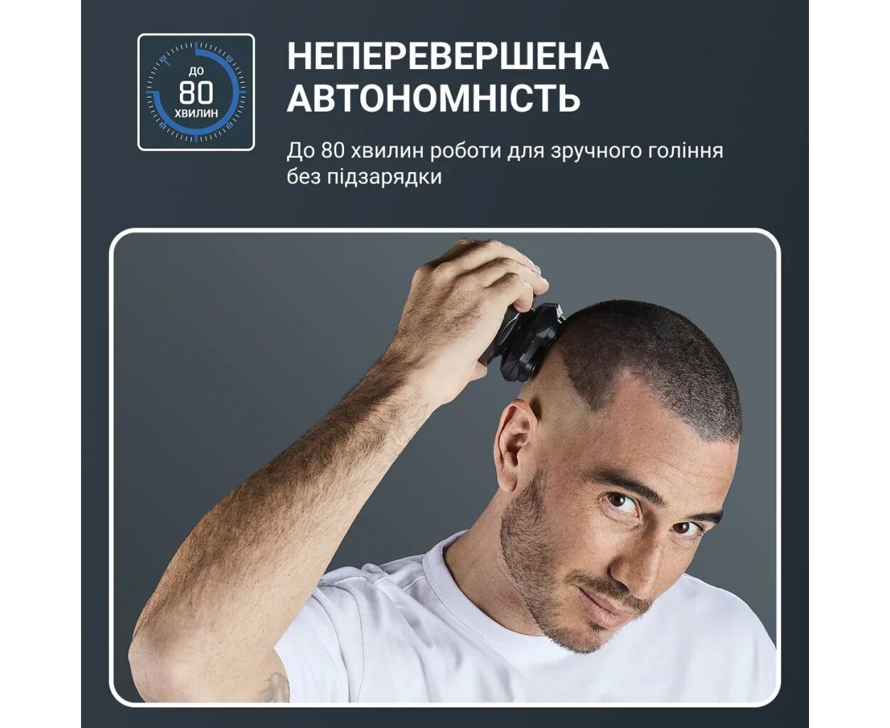 роторная (вращательная), сухое бритье, сухое + влажное бритье, 5, от аккумулятора, Цвет - черный