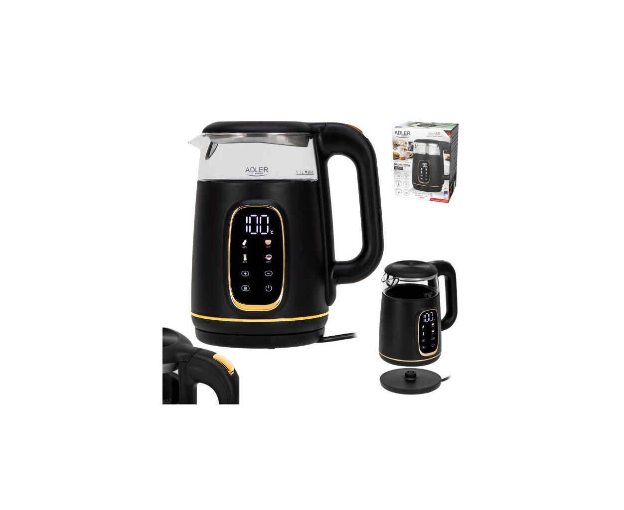Описание Электрочайник Adler AD 1305 black gold
