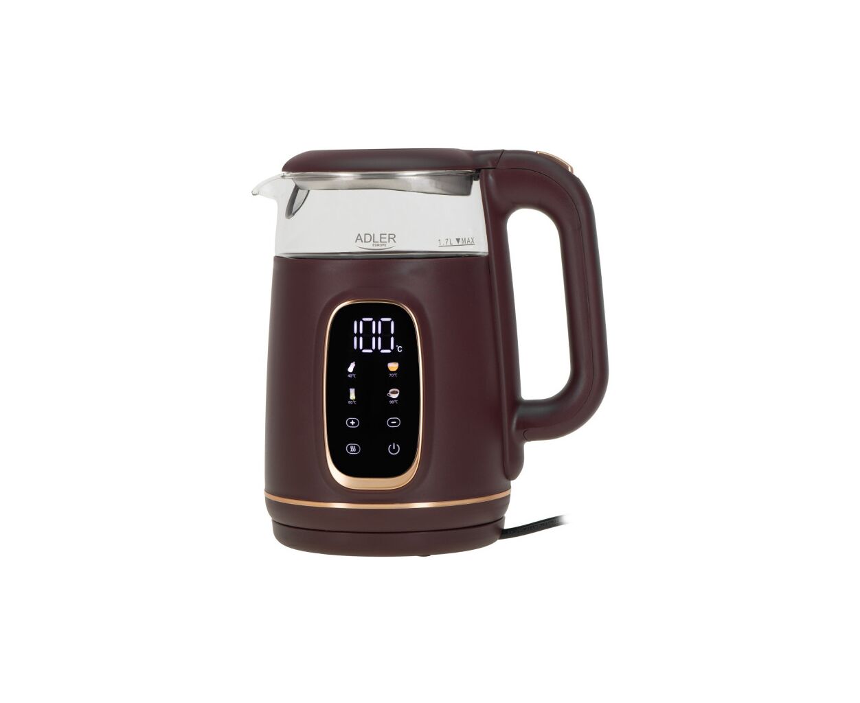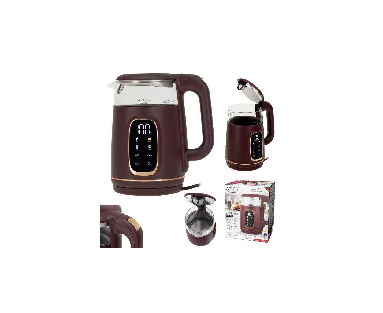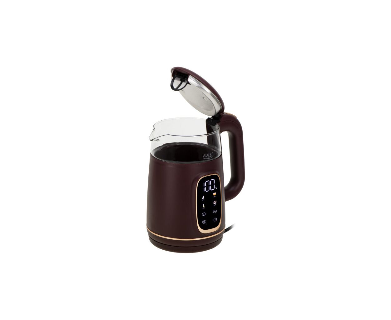 Чайник Adler AD 1305 – многофункциональный чайник мощностью 1850-2200 Вт и объемом 1,7 л. Он поддерживает пять предварительно установленных температурных настроек температуры (40-70-80-90-100 °C), ручную регулировку температуры и поддержание тепла в диапазоне 40-100 °C в течение 2 часов.