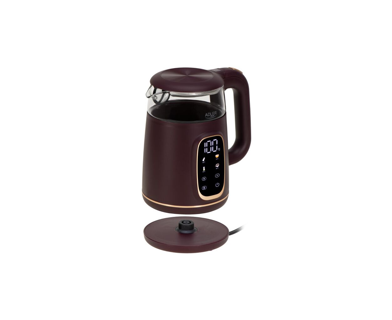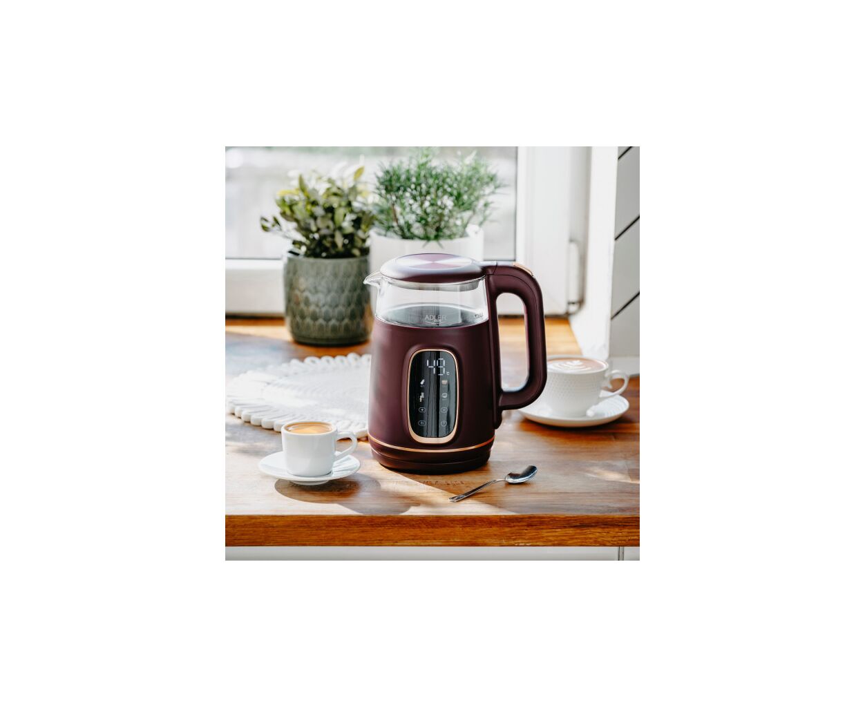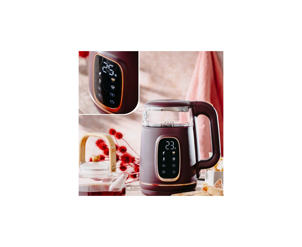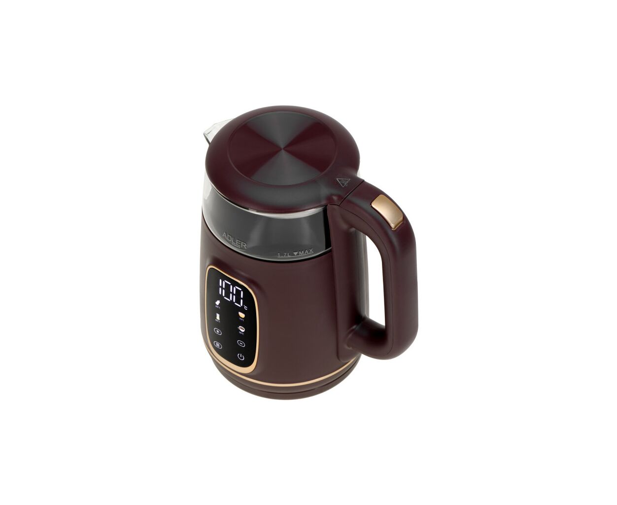 Чайник Adler AD 1305 – многофункциональный чайник мощностью 1850-2200 Вт и объемом 1,7 л. Он поддерживает пять предварительно установленных температурных настроек температуры (40-70-80-90-100 °C), ручную регулировку температуры и поддержание тепла в диапазоне 40-100 °C в течение 2 часов.