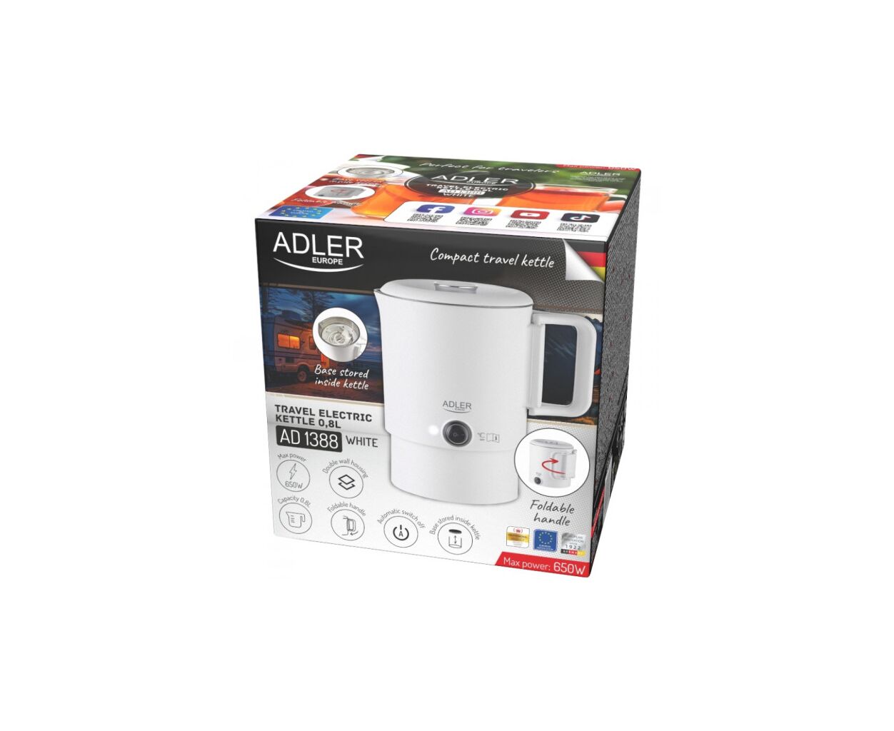 Потерянный чайник для путешествий Adler AD 1388w позволит приготовить любимые горячие напитки во время отпусков, деловых поездок или отдыха в кемпинге.