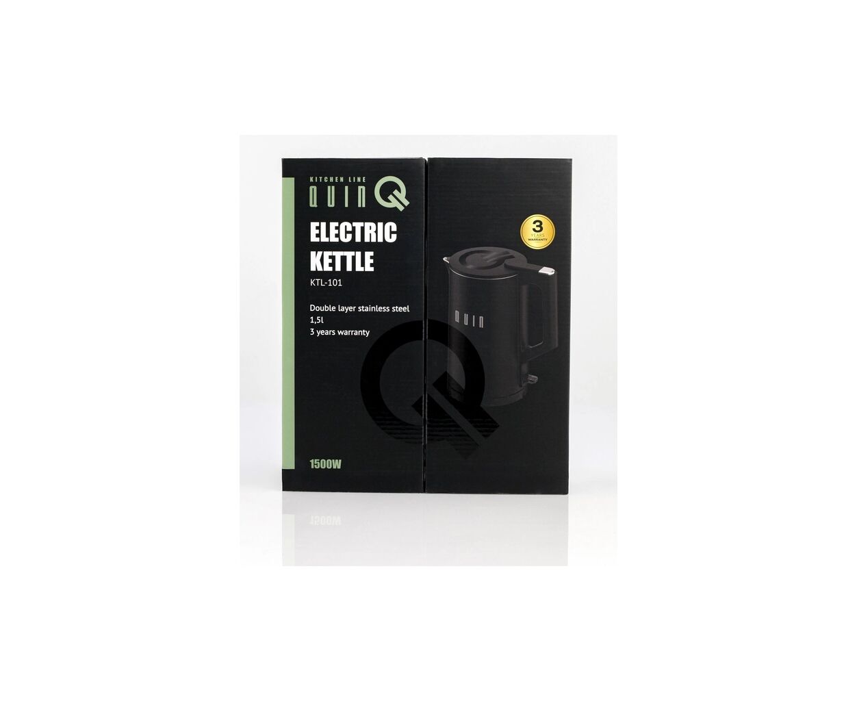Электрочайник QUIN KTL-101 — это инновационное устройство, которое сочетает в себе элегантный дизайн, надежность и передовые технологии для максимального комфорта в приготовлении горячих напитков. С объемом 1,5 литра, этот чайник является идеальным выбором для семейного использования или офиса, обеспечивая быстрое нагревание благодаря своей мощности в 1500 Вт.
