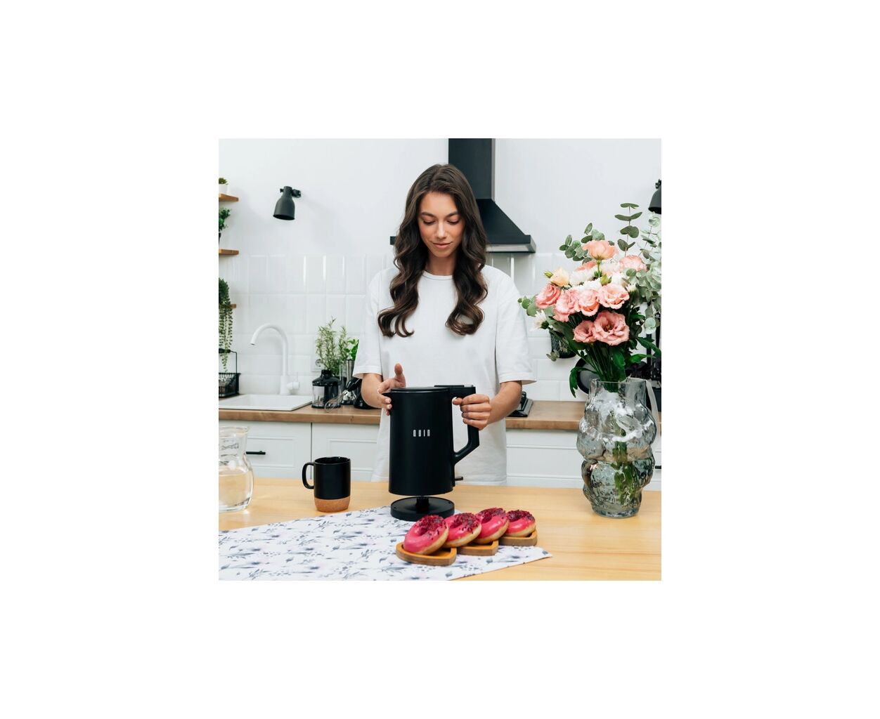 Особенностью QUIN KTL-101 является его двойная стенка: внутренний слой выполнен из высококачественной нержавеющей стали марки #304, что идеально сохраняет тепло, а внешняя оболочка из пластика остается прохладной на ощупь. Это делает его безопасным в использовании, особенно для семей с детьми, предотвращая риск ожогов.