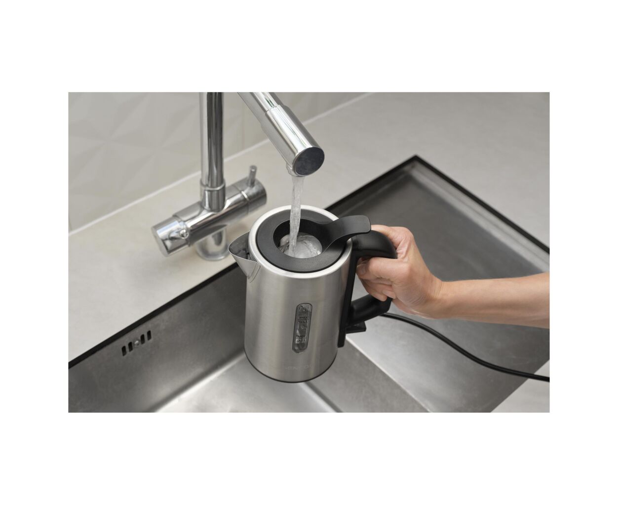 Экологичность — еще одно из наших преимуществ. Несъемный фильтр от накипи обеспечивает чистоту воды, предотвращая появление грязи и известкового налета. В нашей модели предусмотрен практичный отсек для хранения шнура, расположенный под дном чайника. Это позволяет максимально эффективно использовать пространство на вашей кухне.