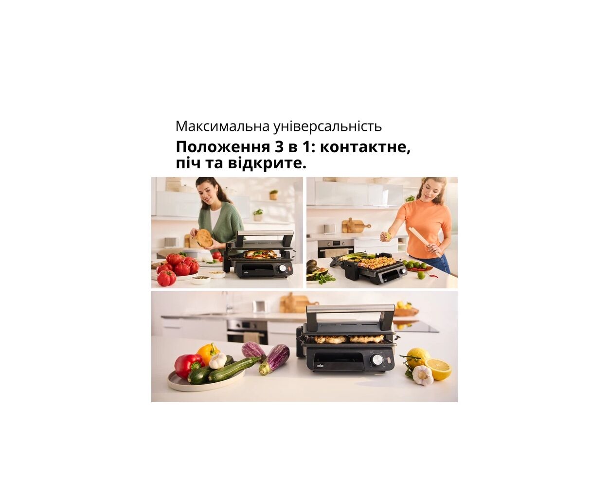 Гриль Braun MultiGrill 5 CG5033IGY – это современное и универсальное устройство для приготовления самых разных блюд дома. Мощность 2000 Вт обеспечивает быстрый нагрев и стабильную работу, а три режима приготовления (гриль, BBQ и «духовка») позволяют готовить мясо, рыбу, овощи и другие продукты с идеальным результатом. Рабочие пластины с антипригарным покрытием нагреваются до 230 °C, равномерно прожаривая продукты и сохраняя их сочность.
