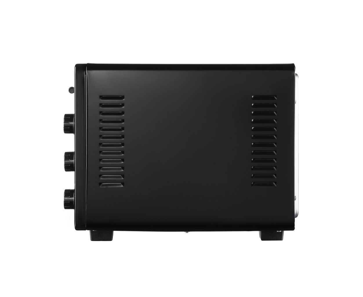 Электрическая минипечь изготовлена в сдержанном черном цвете и минималистском дизайне. Модель отличается улучшенной термоизоляцией и стойкостью, ведь конструкцией предусмотрены четыре нескользящих ножка. Удобство использования обеспечивает широкий температурный диапазон (от 50 до 300 °C), индикация окончания процесса приготовления и встроенный таймер (до 90 минут).