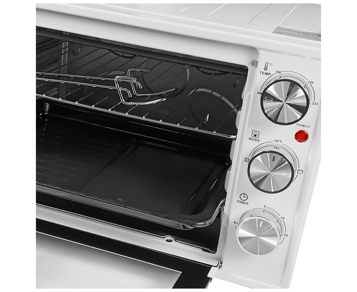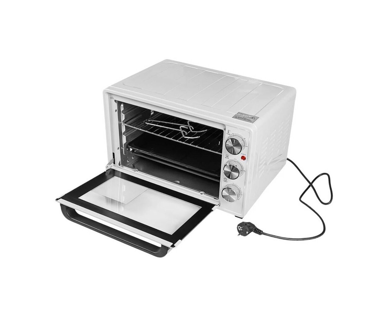 Мощность электропечи составляет 1600 Вт, а термостат позволяет производить регулировку температуры до 230 °С.