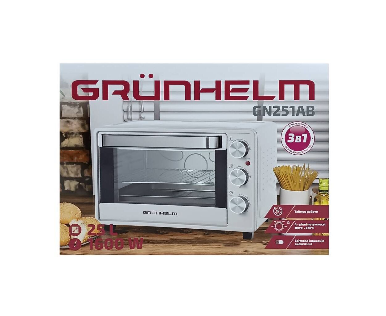 Печь электрическая Grunhelm GN251AB – это компактная электродуховка, которую легко разместить на кухне, не выделяя для нее отдельное место под столешницей.