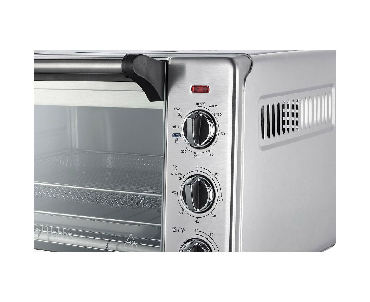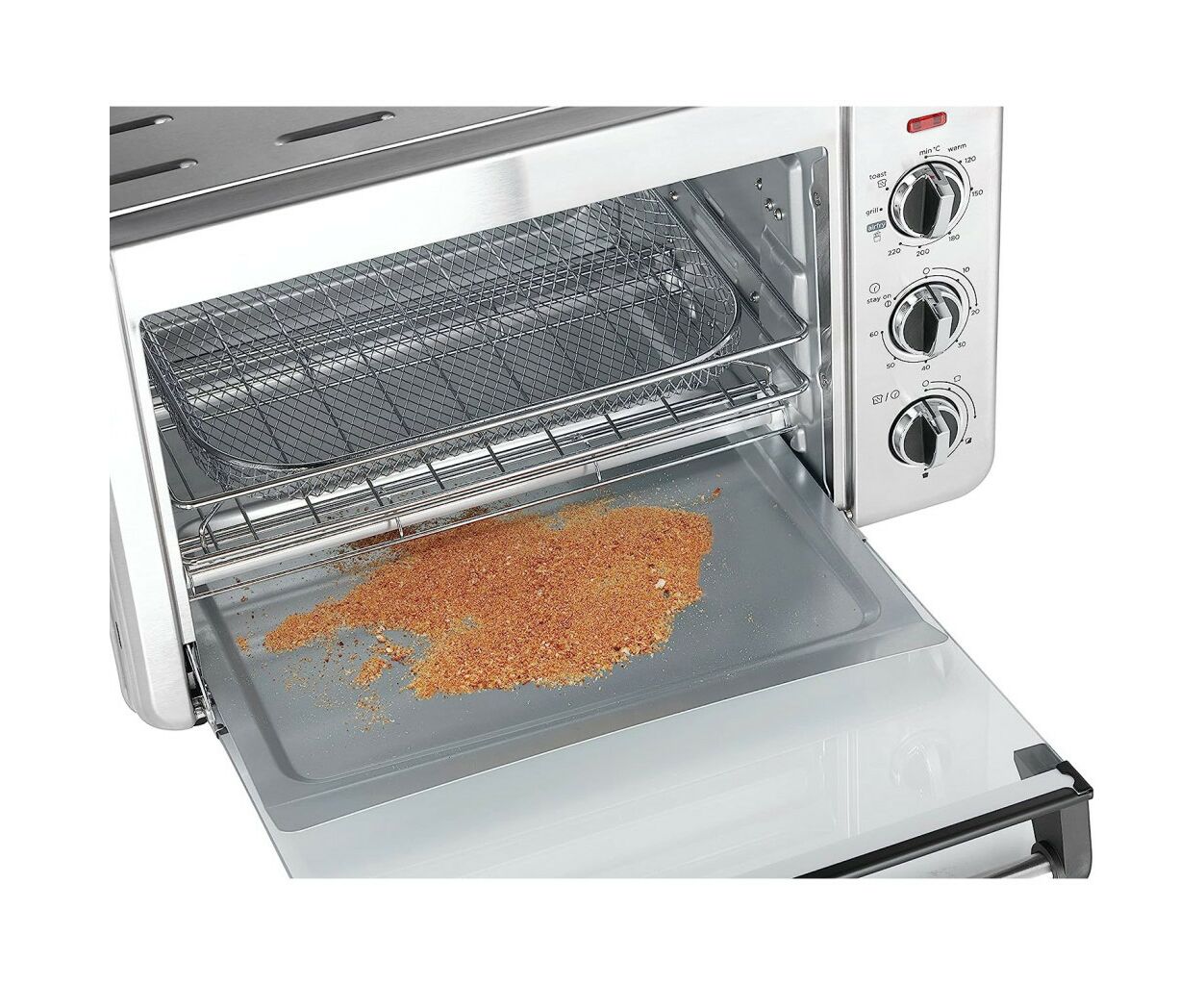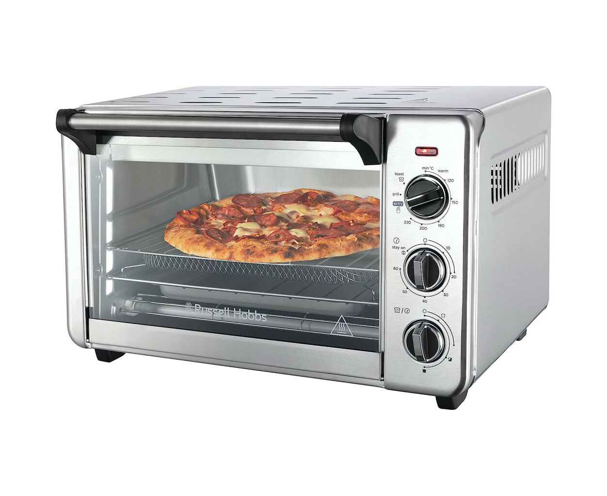 Наружный поддон для крошек, расположенный в нижней части духовки, удобно соберет все крошки в одном месте и облегчит уход за печью. Готовьте для всей семьи с мини-печью Russell Hobbs Air Fry Mini Oven.