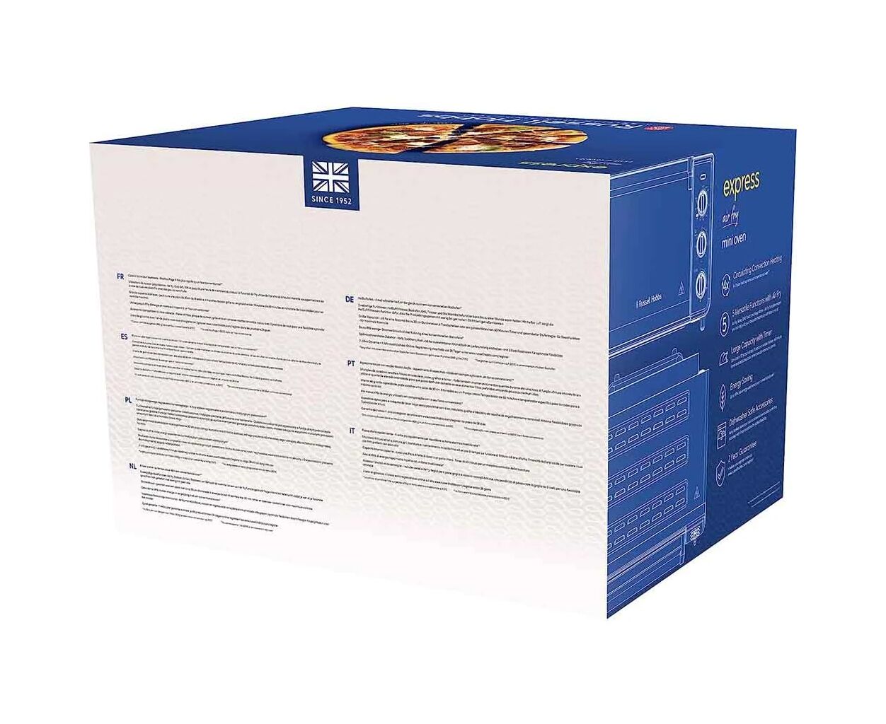Мини-печь Russell Hobbs Air Fry Mini Oven имеет мощность 1500 Вт и оснащена технологией конвекции, которая обеспечивает быстрое и равномерное приготовление пищи для идеальных результатов каждый раз.