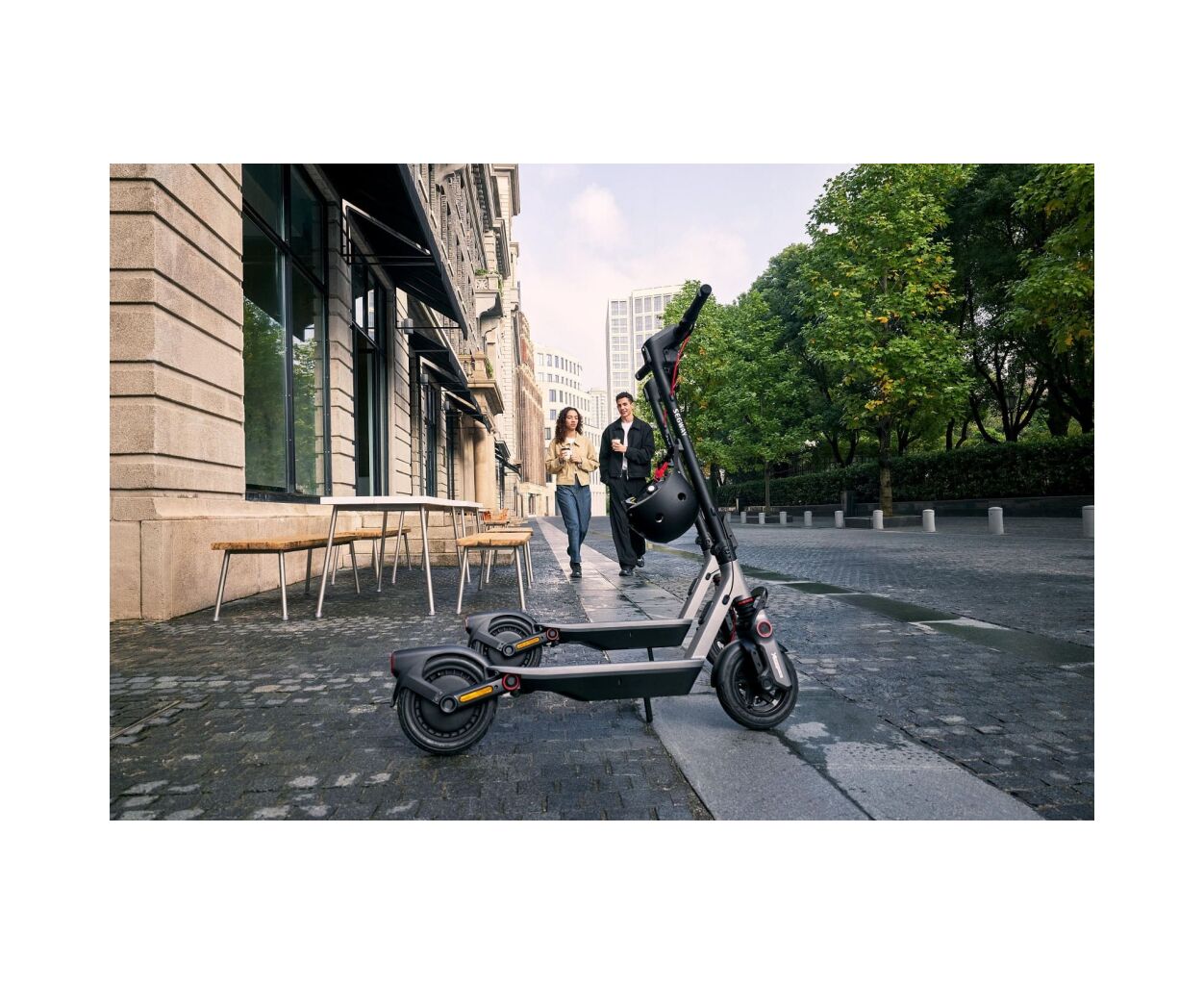 Передняя гидравлическая и задняя эластомерная подвеска Ninebot F3 E обеспечивает плавную поездку даже по мощеным или кирпичным дорогам, что делает его идеальным для городских поездок.