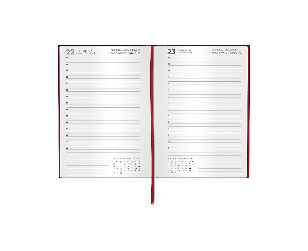датированный, А5, количество листов - 168, 70 г/м², цвет бумаги - белый, пвх, Цвет - бордовый, 14.5 х 2 х 21 см, 2026, украинский