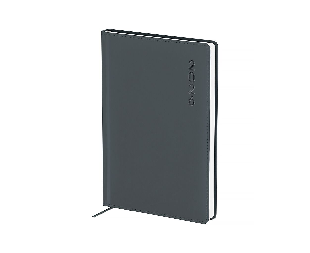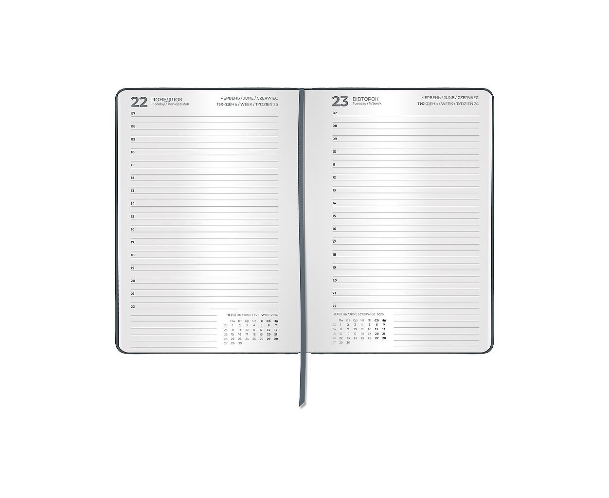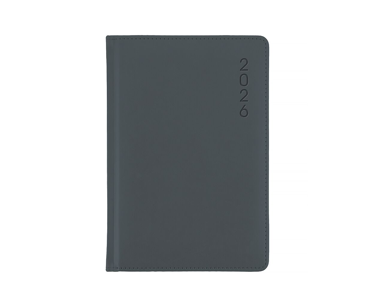 датированный, А5, количество листов - 168, 70 г/м², цвет бумаги - белый, PU, Цвет - серый, 14.5 х 2 х 21 см, 2026, украинский, английский
