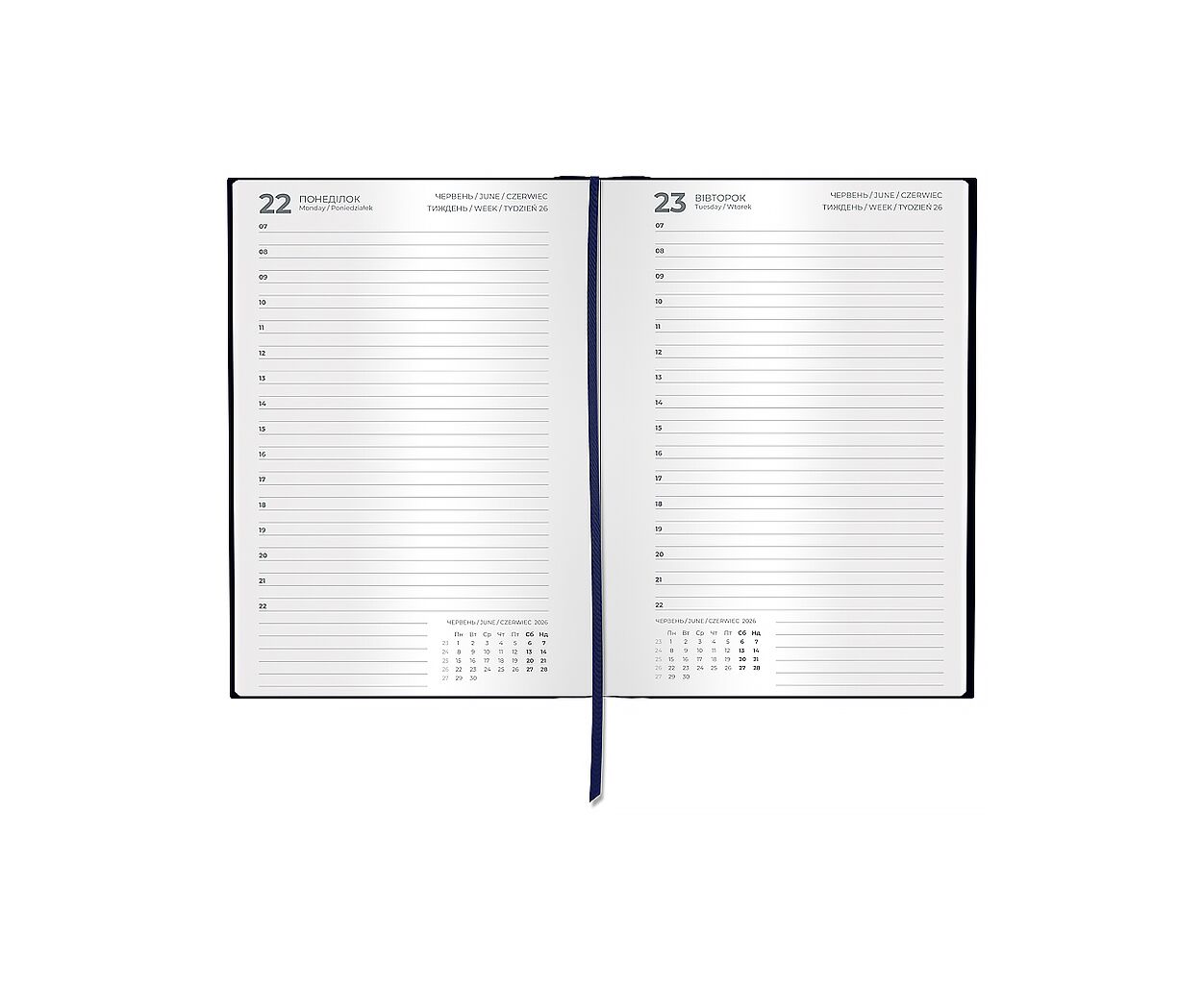 датированный, А5, количество листов - 168, 70 г/м², цвет бумаги - белый, пвх, 14.5 х 2 х 21 см, 2026, украинский, английский