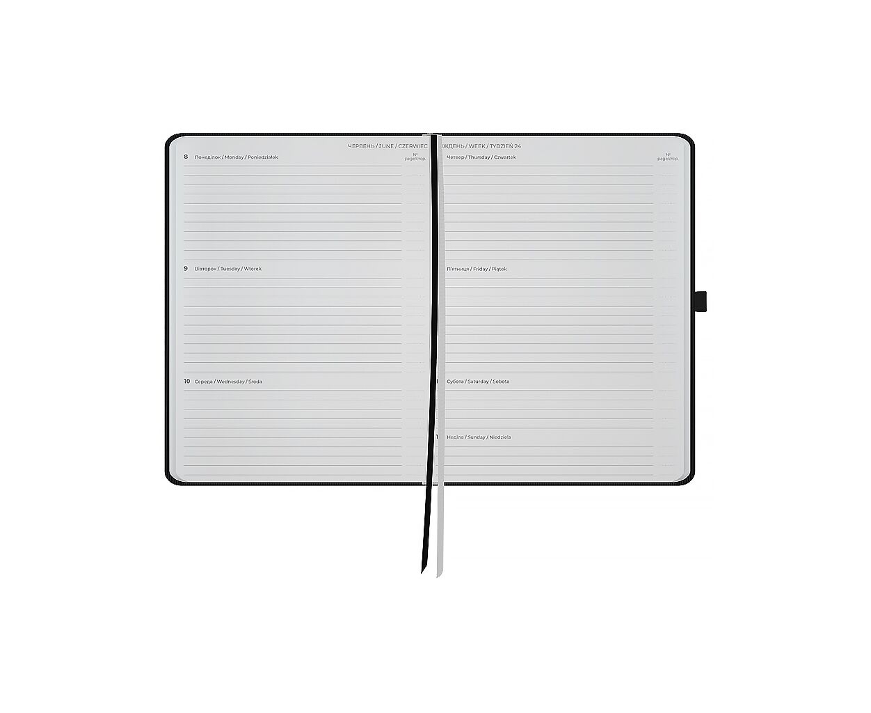 датированный, А4, количество листов - 96, 80 г/м², цвет бумаги - кремовый, PU, Цвет - черный, 19.5 х 12.7 х 1.1 см, 2026, украинский, английский