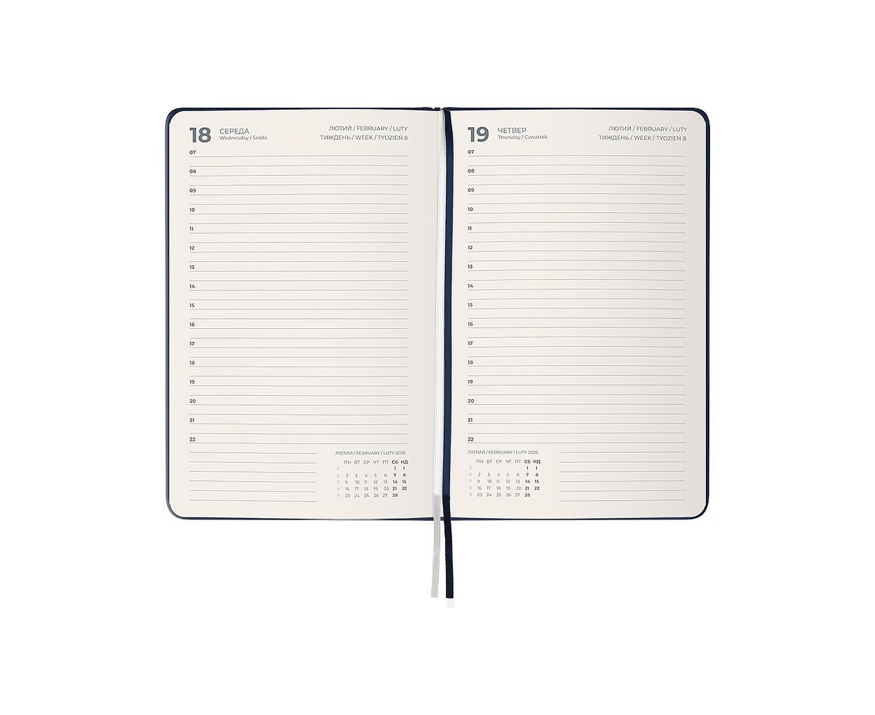 датированный, А4, количество листов - 168, 80 г/м², цвет бумаги - кремовый, пвх, Цвет - синий, 255 х 195 мм, 2026, украинский, английский