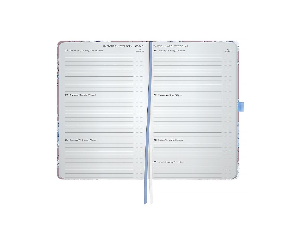 датированный, А5, количество листов - 96, 80 г/м², цвет бумаги - кремовый, PU, Цвет - розовый, 12.5 х 2 х 19.5 см, 2026, украинский, английский