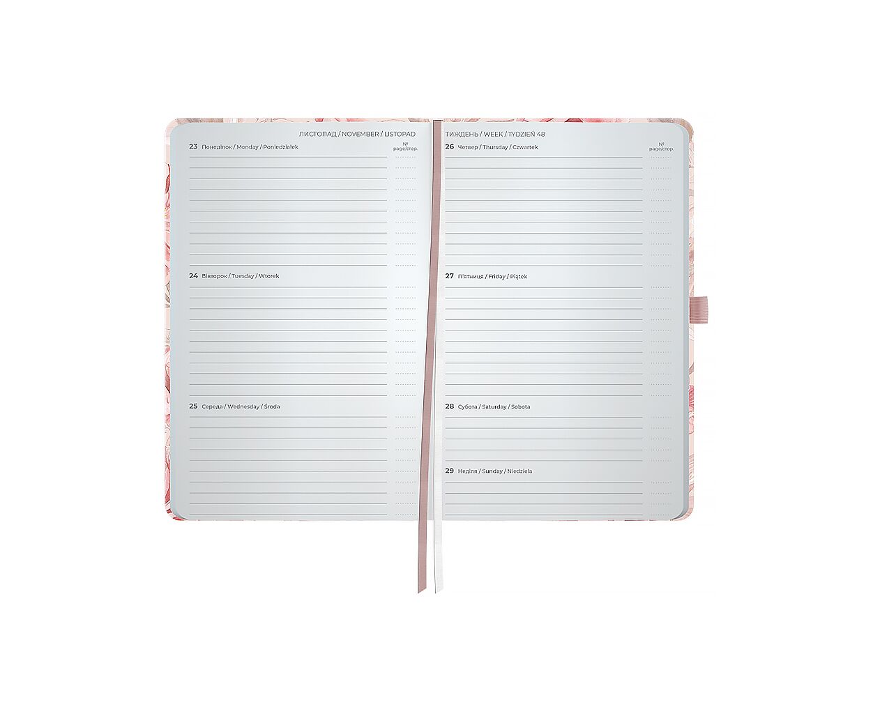 датированный, А5, количество листов - 96, 80 г/м², цвет бумаги - кремовый, PU, Цвет - розовый, 12.5 х 2 х 19.5 см, 2026, украинский, английский