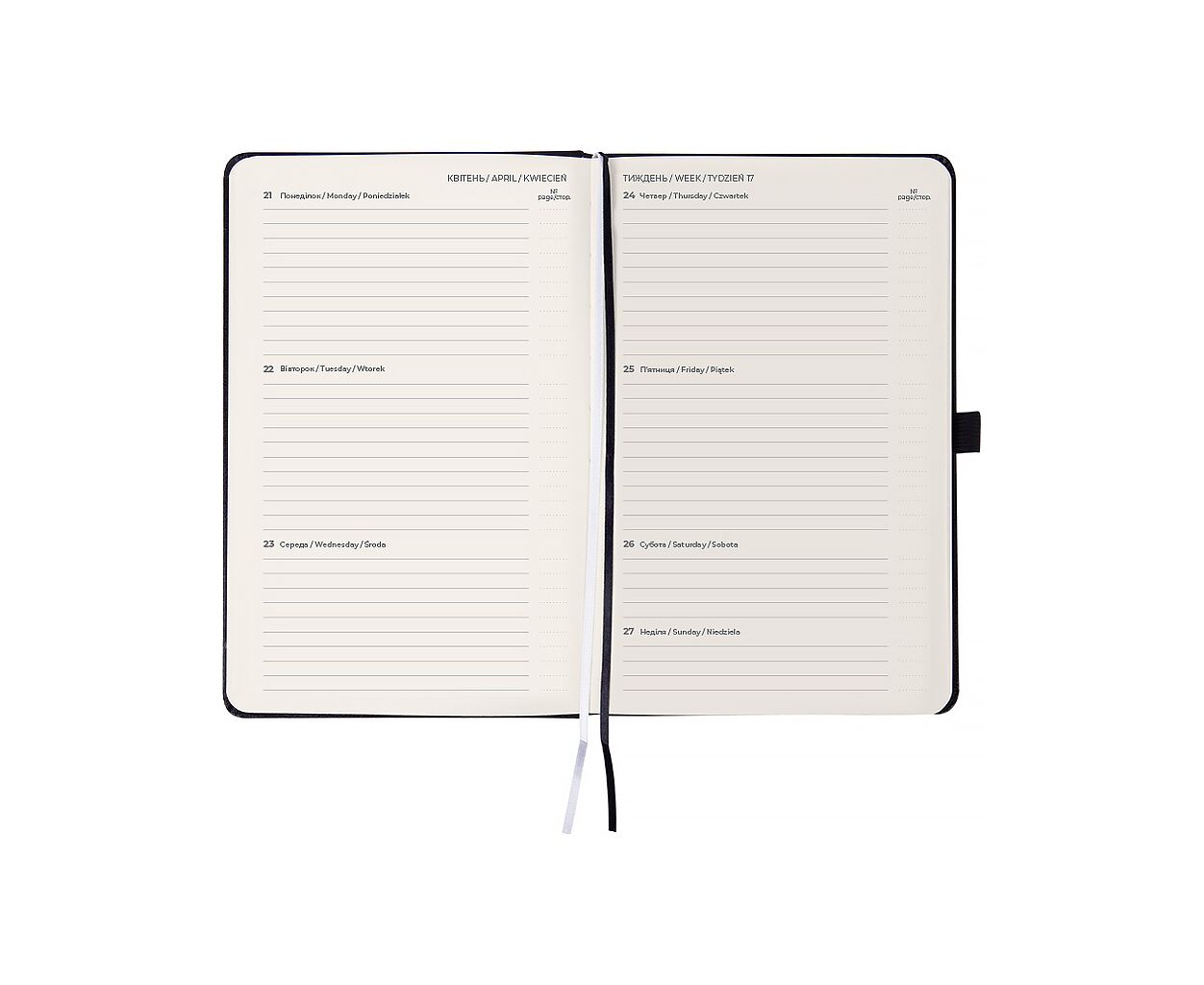 датированный, А5, количество листов - 96, 80 г/м², цвет бумаги - кремовый, пвх, Цвет - черный, 195 х 125 мм, 2026, украинский, английский