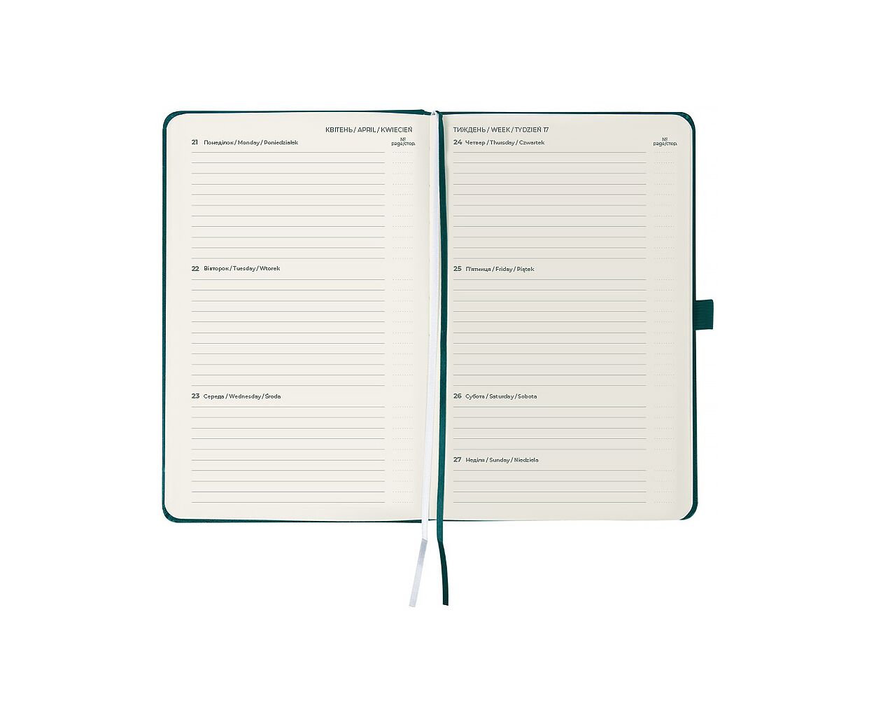 датированный, А5, количество листов - 96, 80 г/м², цвет бумаги - кремовый, пвх, Цвет - аквамарин, 195 х 125 мм, 2026, украинский, английский
