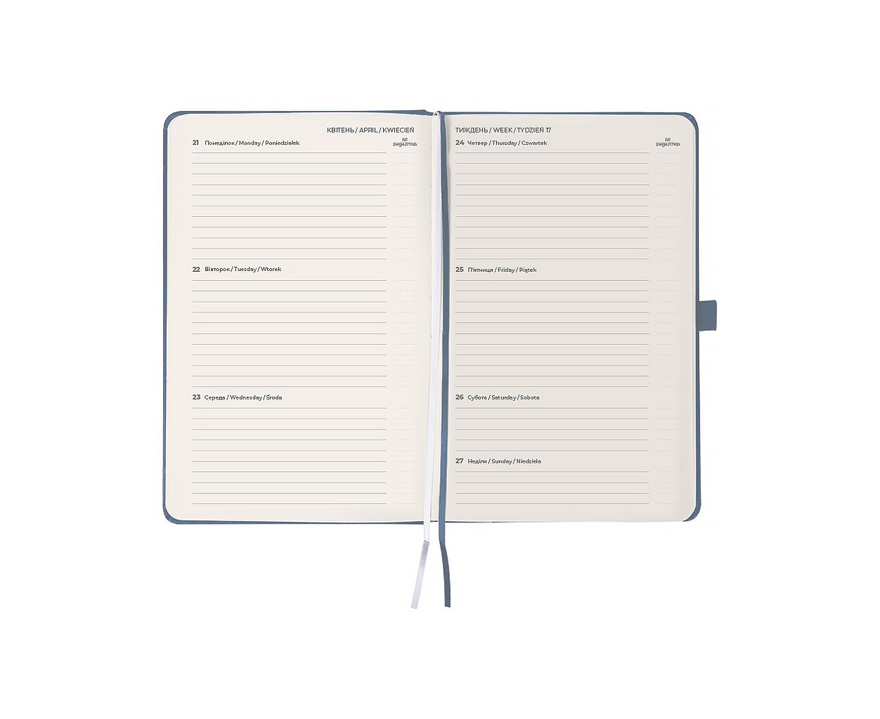 датированный, А5, количество листов - 96, 80 г/м², цвет бумаги - кремовый, пвх, Цвет - серый, 195 х 125 мм, 2026, украинский, английский