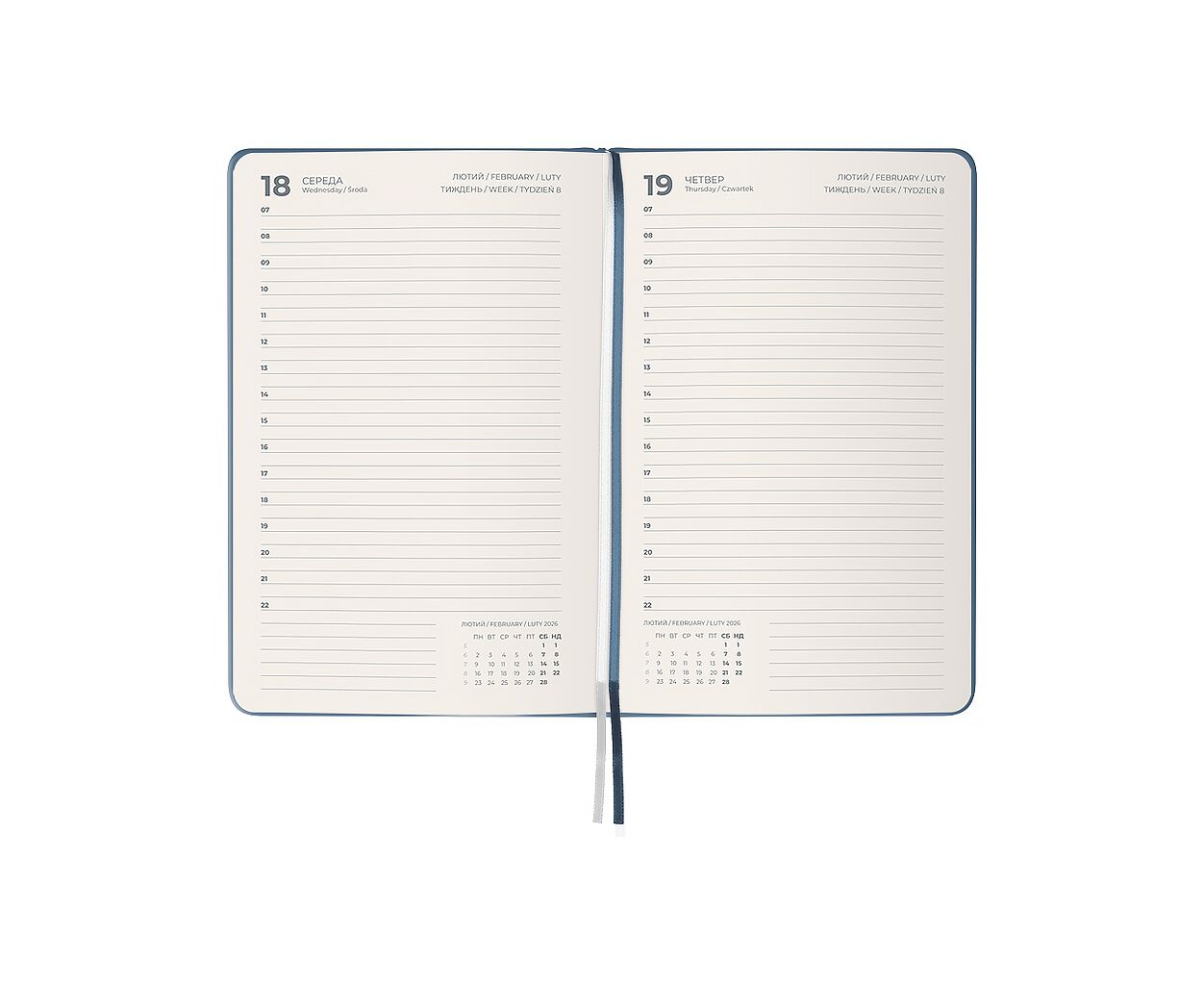 датированный, А5, количество листов - 168, 80 г/м², цвет бумаги - кремовый, пвх, Цвет - серый, 14.5 х 2 х 21 см, 2026, украинский, английский