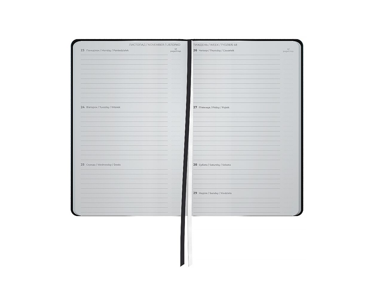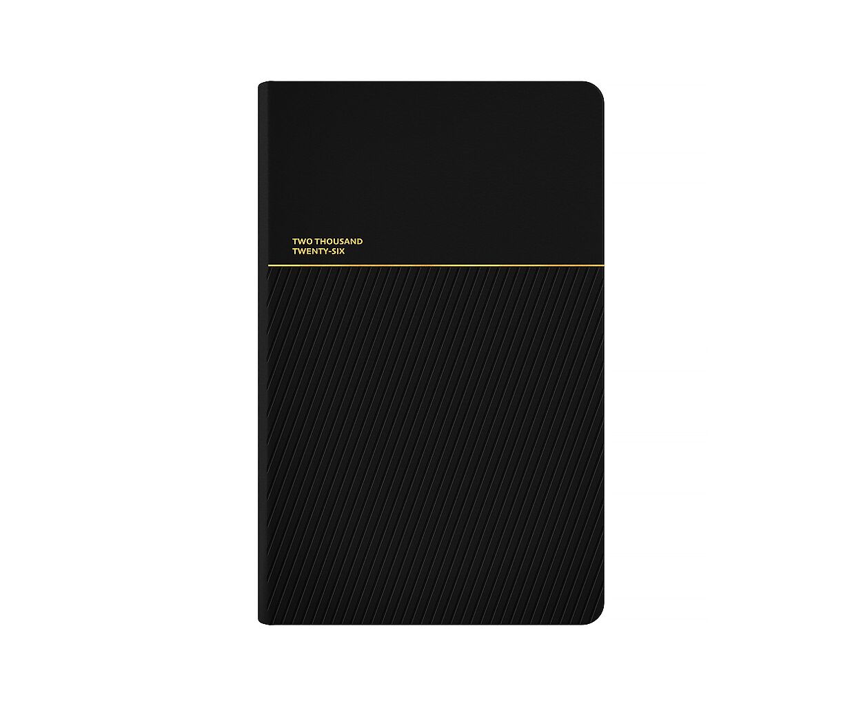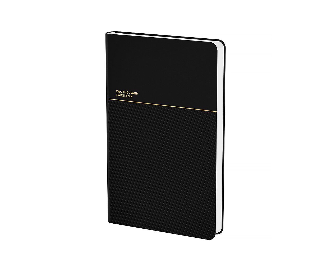 датированный, А5, количество листов - 96, 80 г/м², цвет бумаги - кремовый, PU, Цвет - черный, 12.5 х 2 х 19.5 см, 2026, украинский, английский
