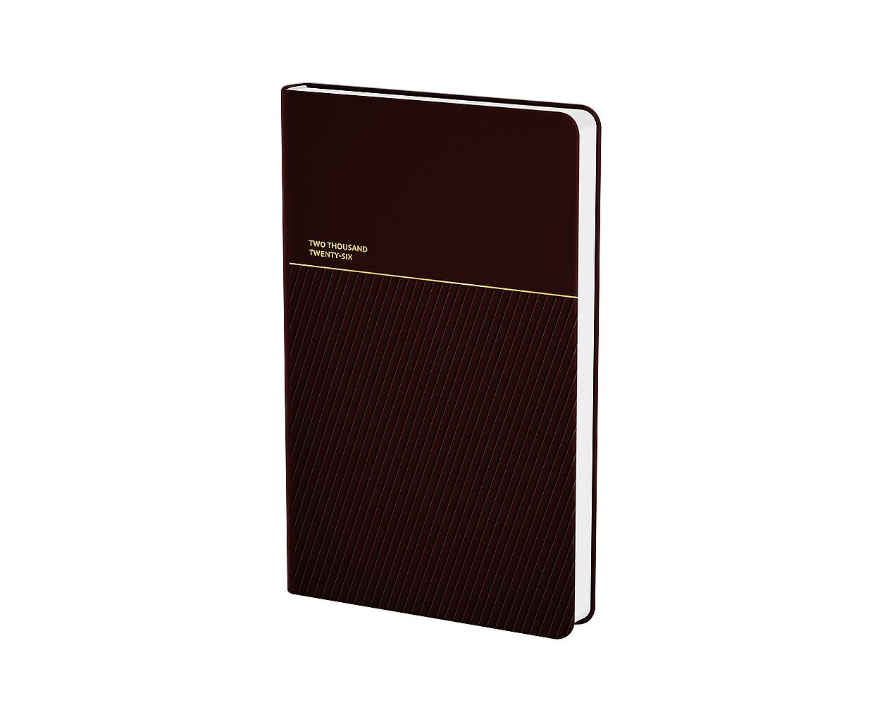 датированный, А5, количество листов - 96, 80 г/м², цвет бумаги - кремовый, PU, Цвет - коричневый, 12.5 х 2 х 19.5 см, 2026, украинский, английский