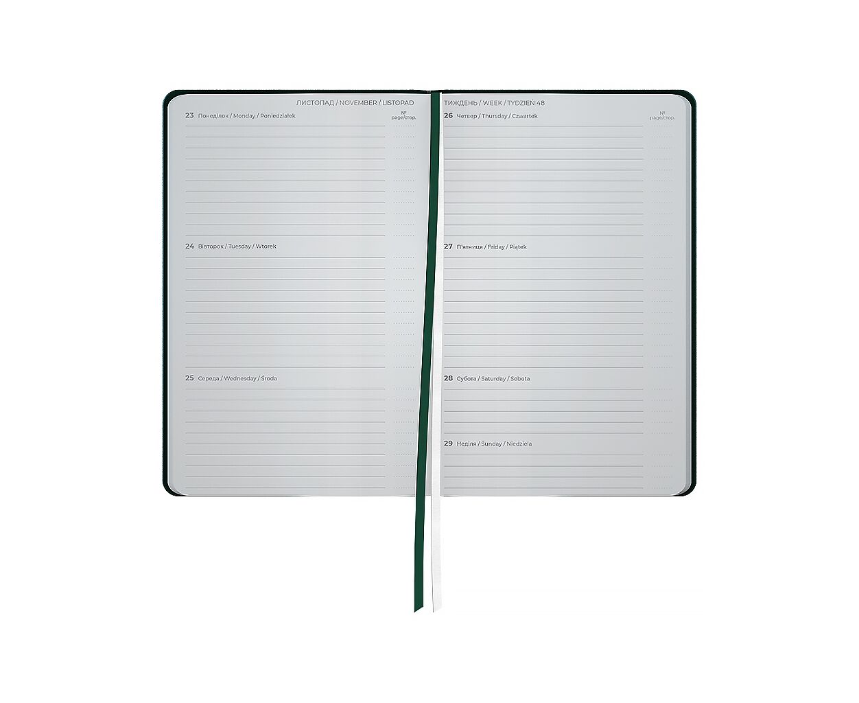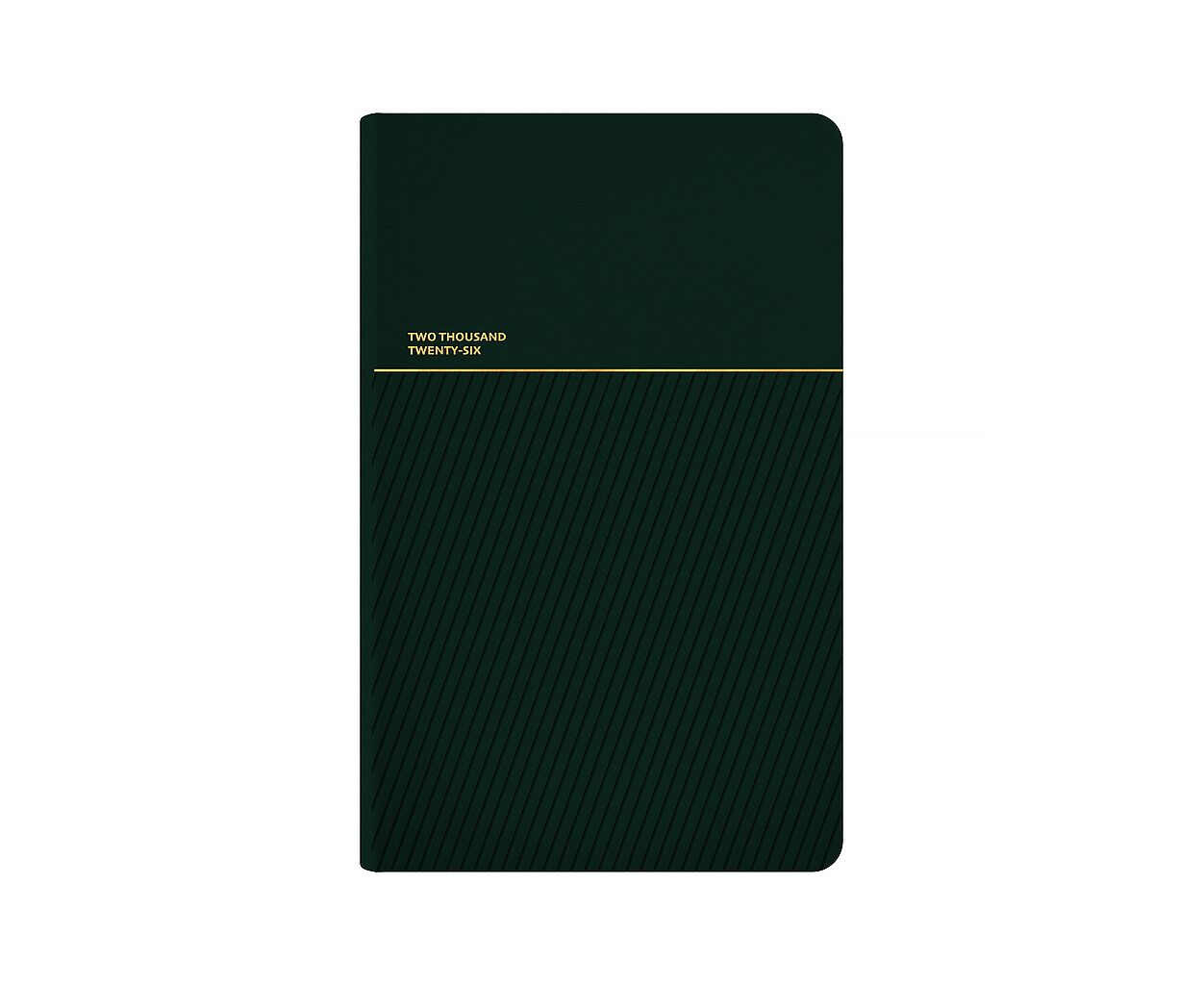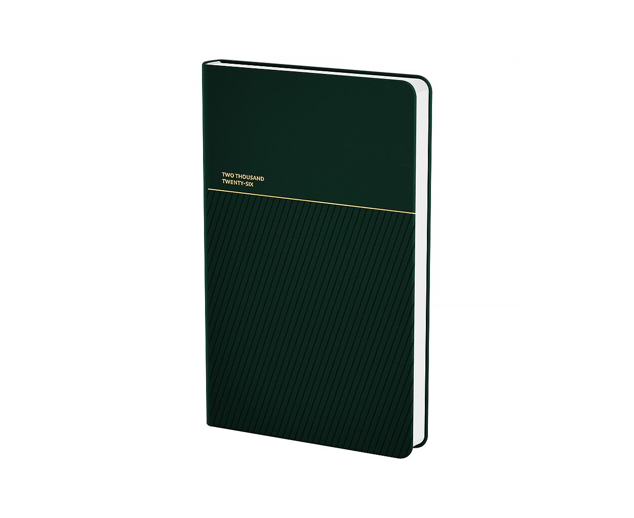 датированный, А5, количество листов - 96, 80 г/м², цвет бумаги - кремовый, PU, Цвет - темно-зеленый, 12.5 х 2 х 19.5 см, 2026, украинский, английский