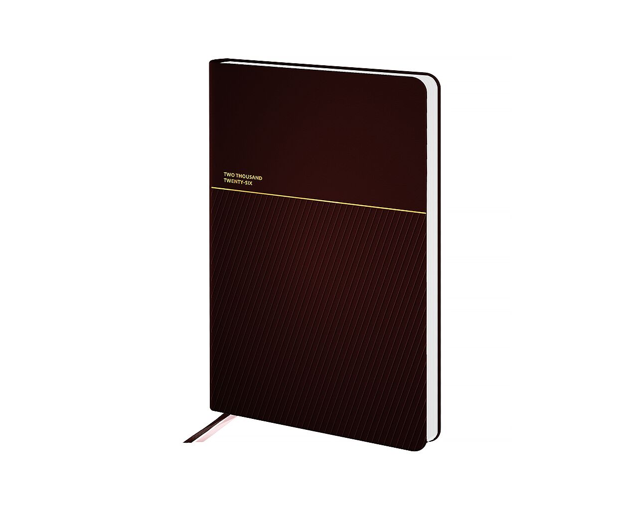 датированный, А5, количество листов - 168, 80 г/м², цвет бумаги - кремовый, PU, Цвет - коричневый, 14.5 х 2 х 21 см, 2026, украинский, английский