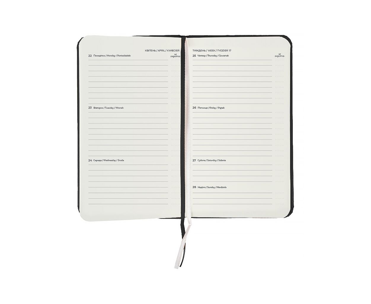 датированный, А6, количество листов - 96, 80 г/м², цвет бумаги - кремовый, пвх, Цвет - черный, 9 х 15 см, 2026, украинский, английский