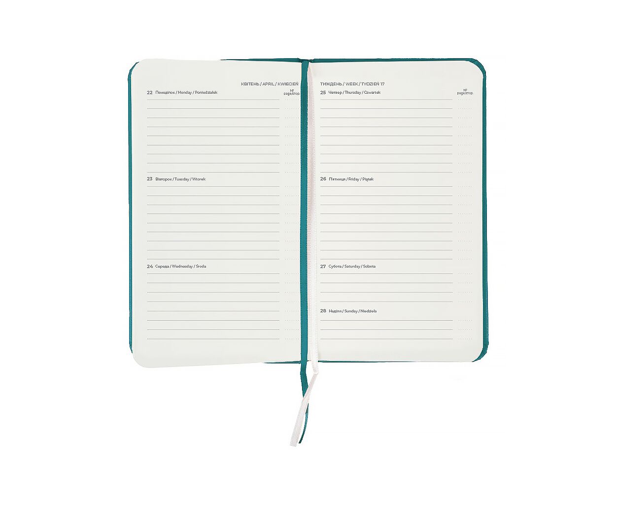 датированный, А6, количество листов - 96, 80 г/м², цвет бумаги - кремовый, пвх, Цвет - аквамарин, 9 х 15 см, 2026, украинский, английский
