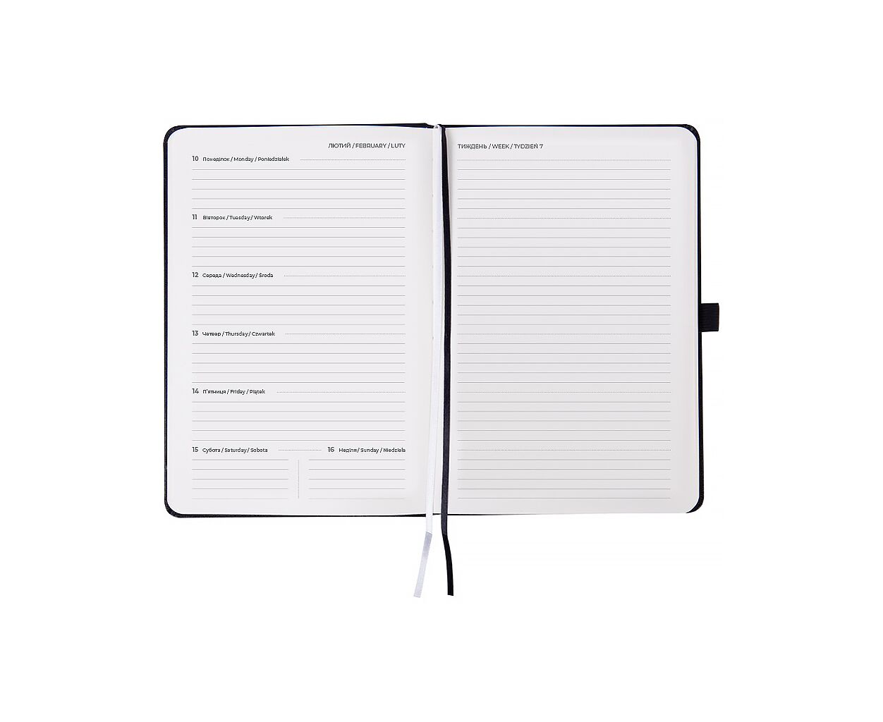 датированный, А5, количество листов - 96, 80 г/м², цвет бумаги - кремовый, пвх, Цвет - черный, 21 х 14.5 х 1.6 см, 2026, украинский