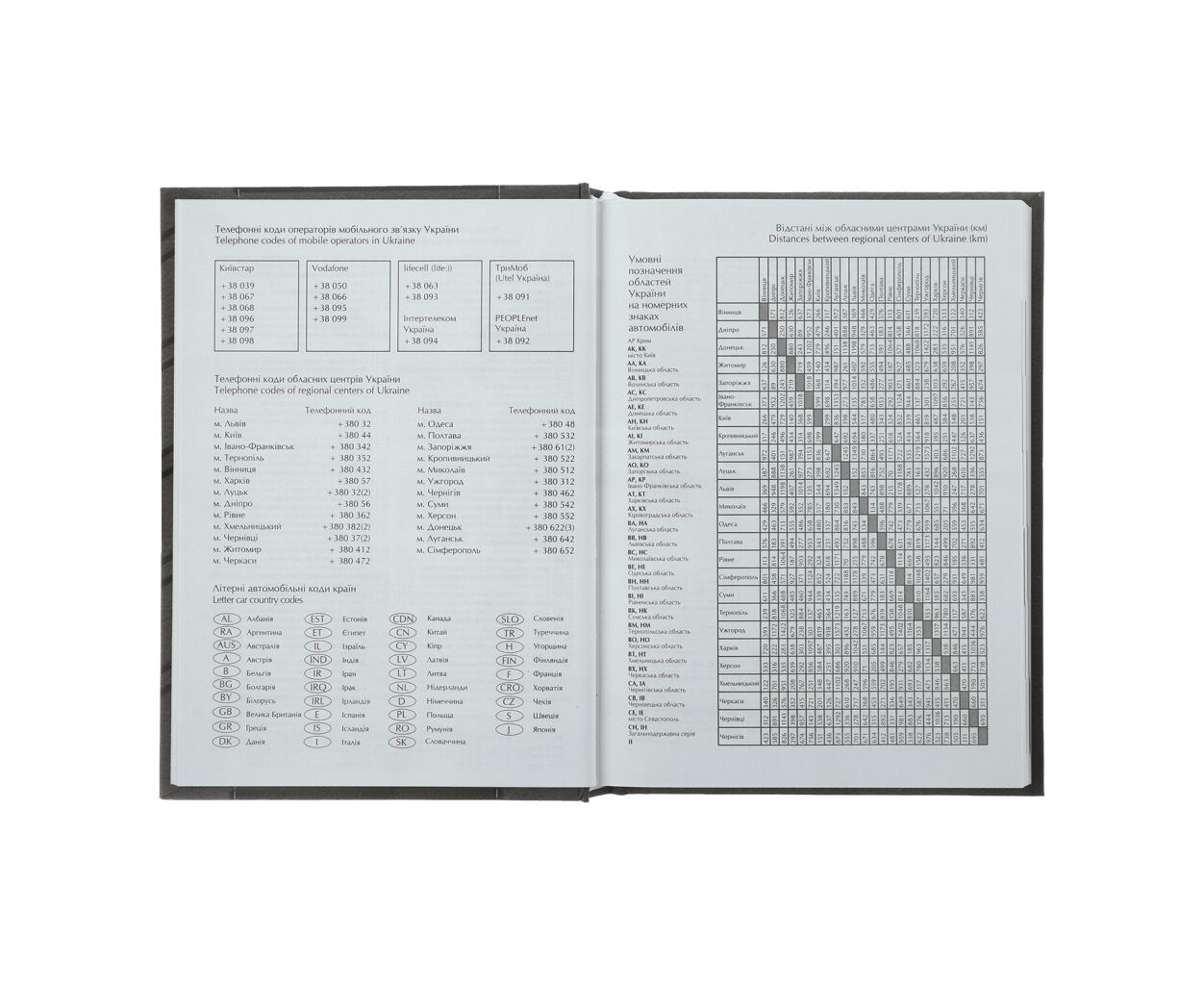 - таблица расстояний между областными центрами Украины