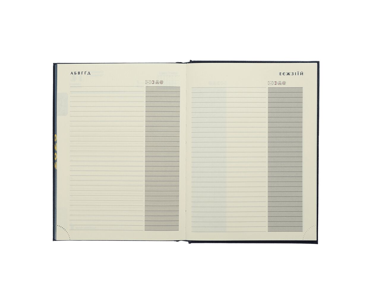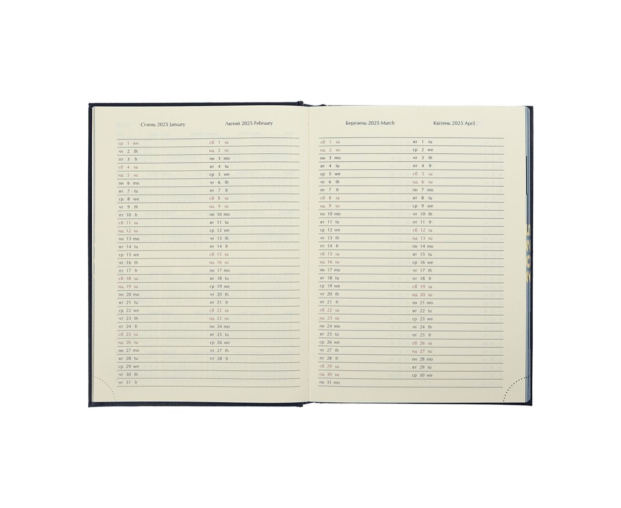 датированный, А5, количество листов - 336, 70 г/м², цвет бумаги - кремовый, искусственная кожа, Цвет - синий, 2026, украинский, английский