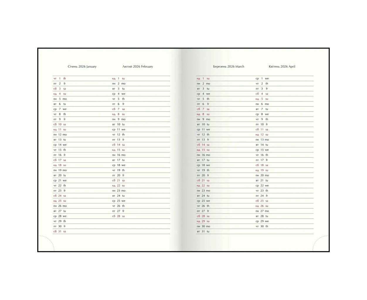 датований 2026 MONOCHROME A5 чорний