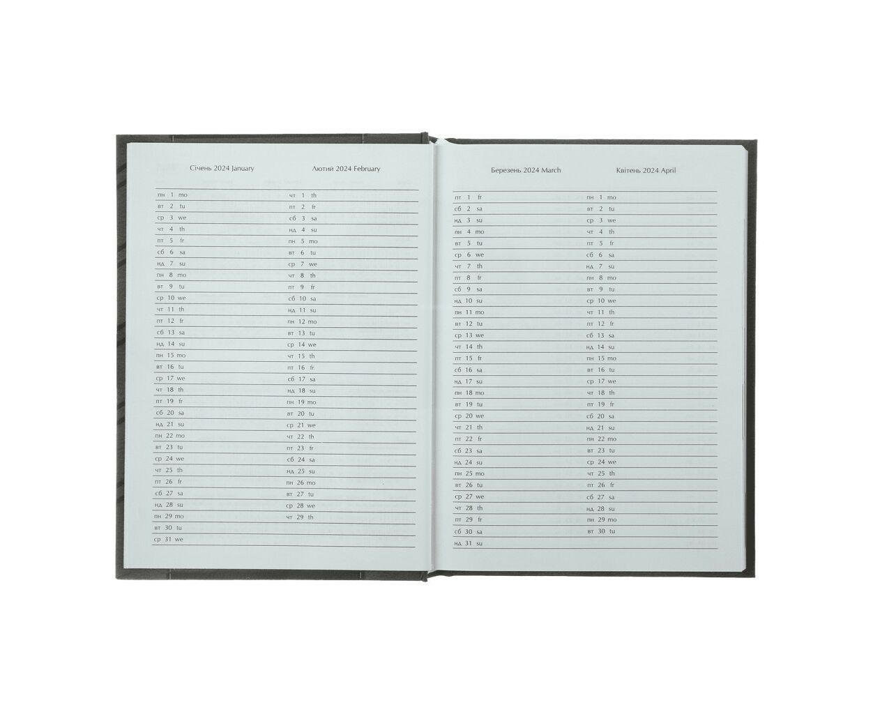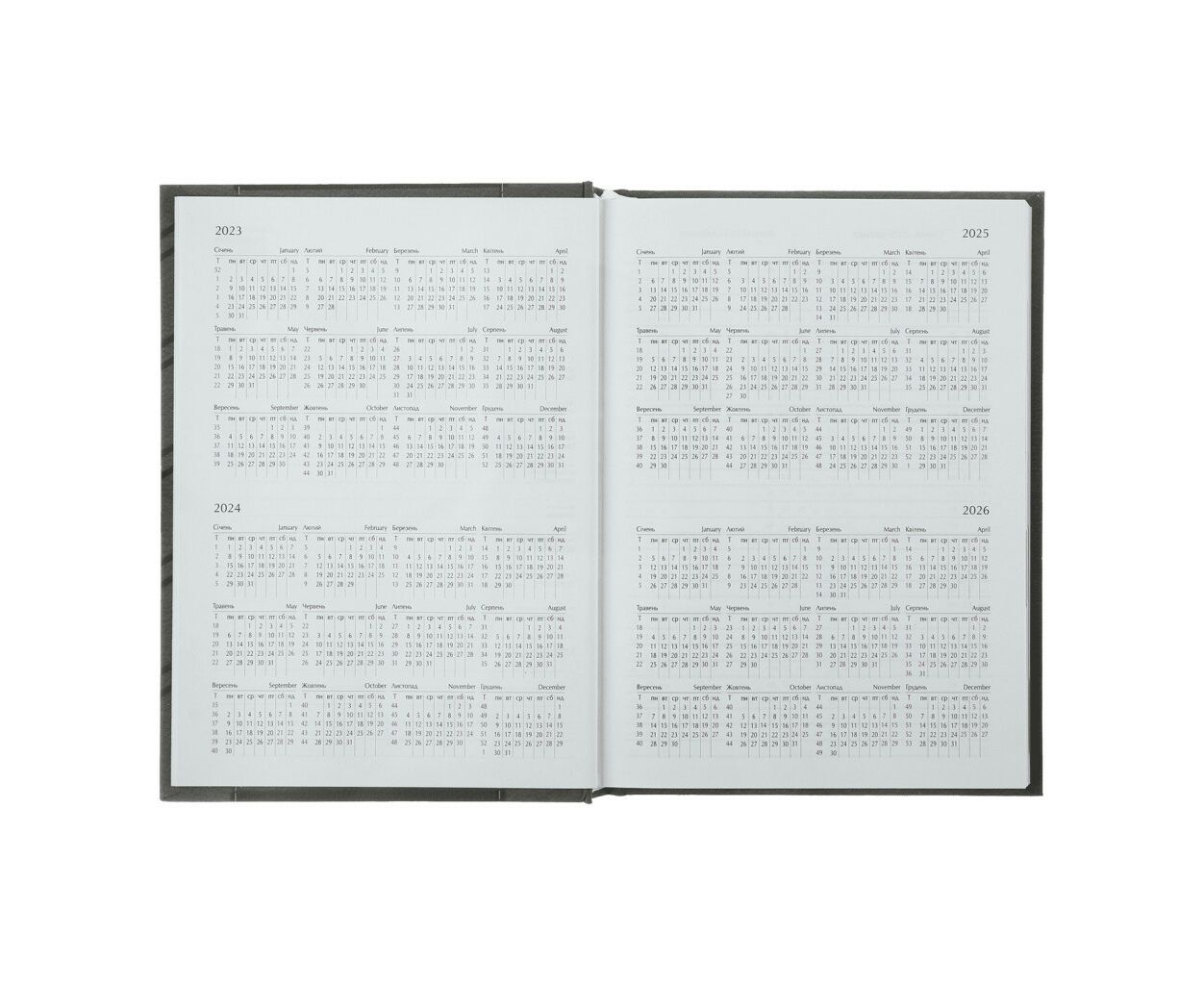 Жесткий полиграфический переплет дневника PARALLEL выполнен в лаконичном, строгом дизайне со стильным фольгированием и визуальной текстурой натуральной кожи. Имеет тонированный под цвет обложки срез внутреннего блока.
