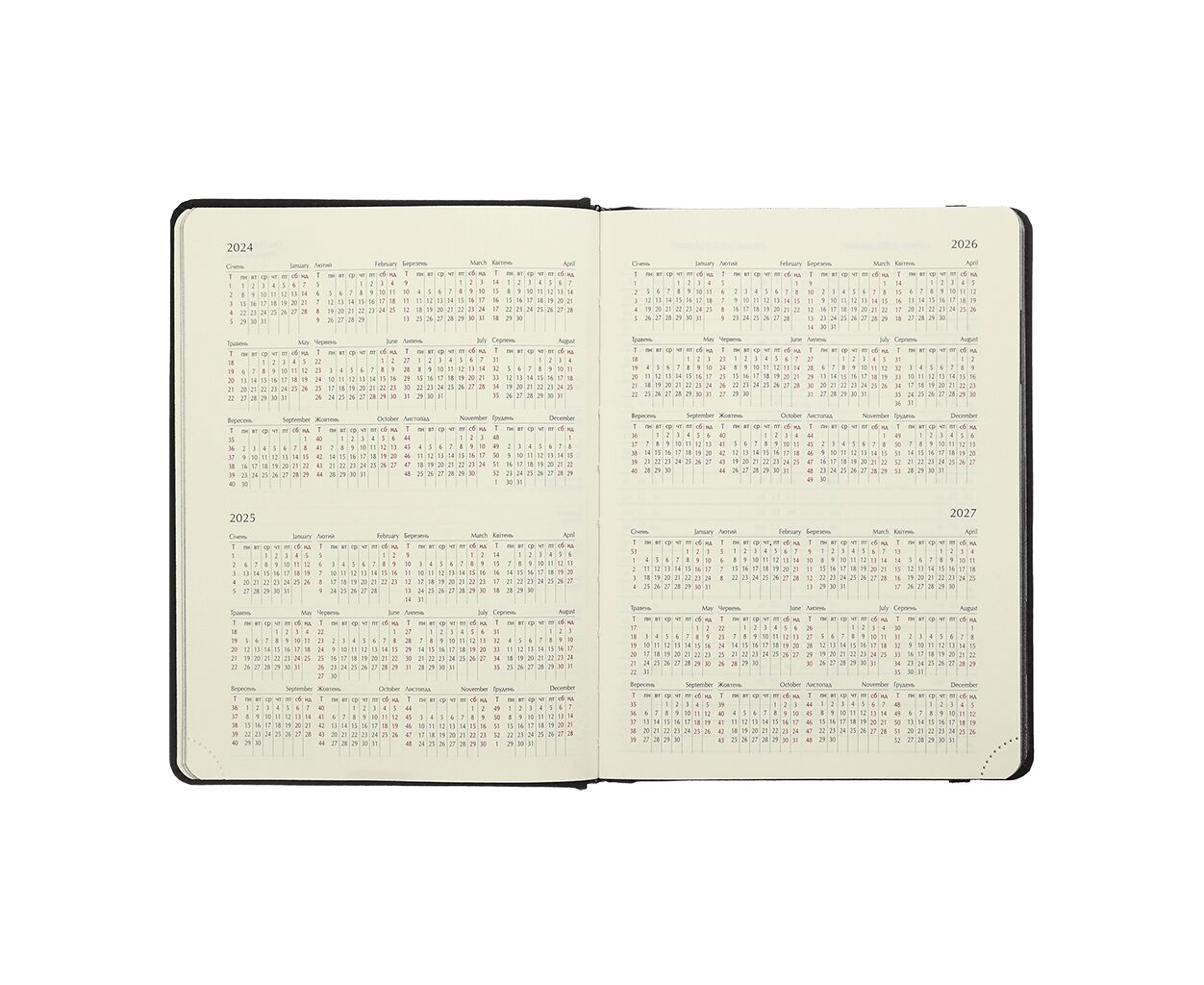 Гибкая обложка ежедневника VELOUR выполнена из искусственной кожи с интенсивным бархатным покрытием. Две функциональные шильды на лицевой и оборотной стороне обложки с углублениями для поперечной резинки, обеспечивают удобную и надежную фиксацию ежедневника в закрытом состоянии. Дизайн гармонично дополняет и обогащает тонированный золотым цветом срез внутреннего блока и тиснение золотой фольгой года и надписи на лицевой стороне обложки.