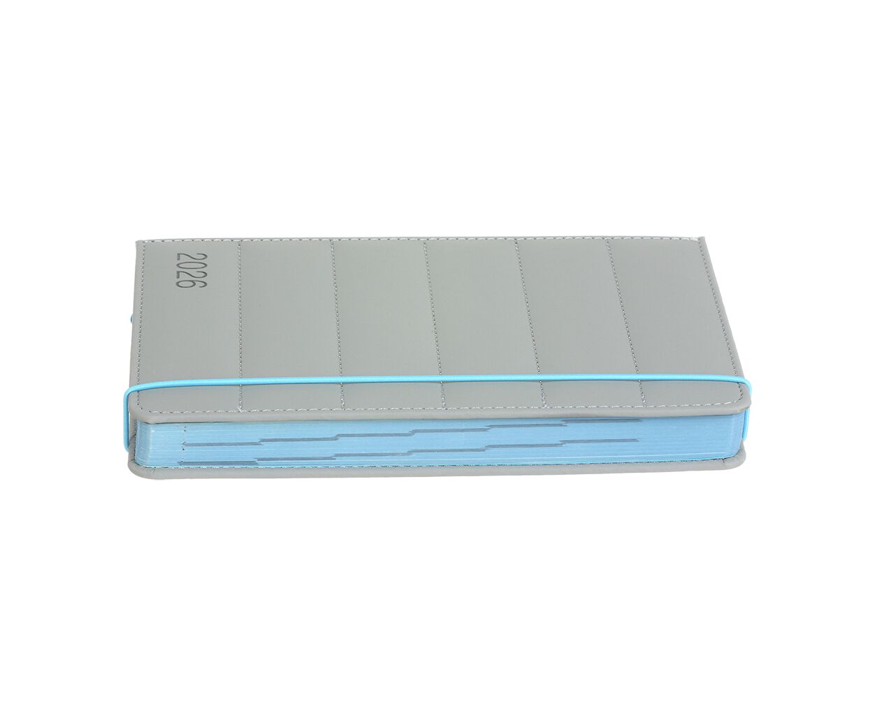 Жесткий переплет дневника AURA изготовлен из искусственной кожи с эффектом soft touch, с поролоном. Стиль обложке придает декоративная прошивка по периметру и широким горизонтальным полосам, а также слепое тиснение года. Оригинальный акцент создает продольная круглая бирюзовая резинка для надежной фиксации дневника в закрытом состоянии и тонирование среза внутреннего блока цветом бирюзы.