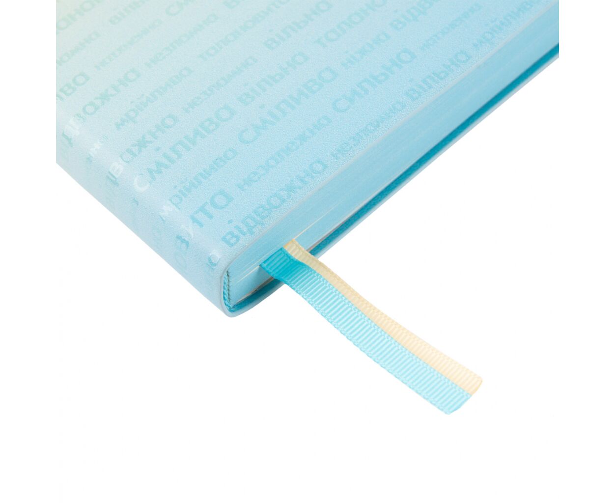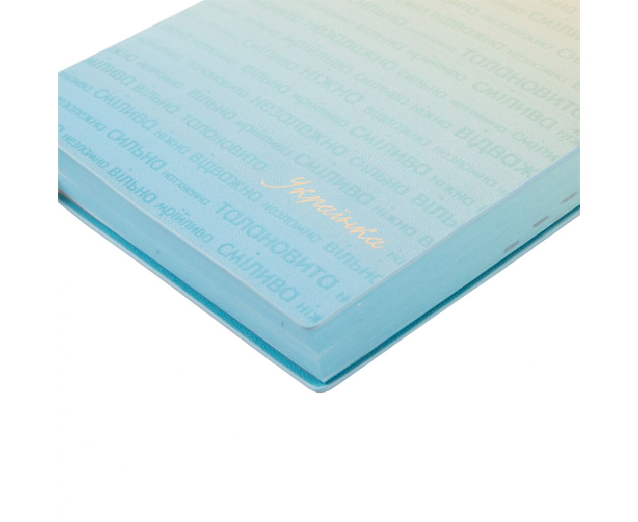 датированный, А5, количество листов - 368, 80 г/м², цвет бумаги - кремовый, PU, Цвет - жёлто-голубой, 21 х 15 х 2 см, 2025, украинский, английский