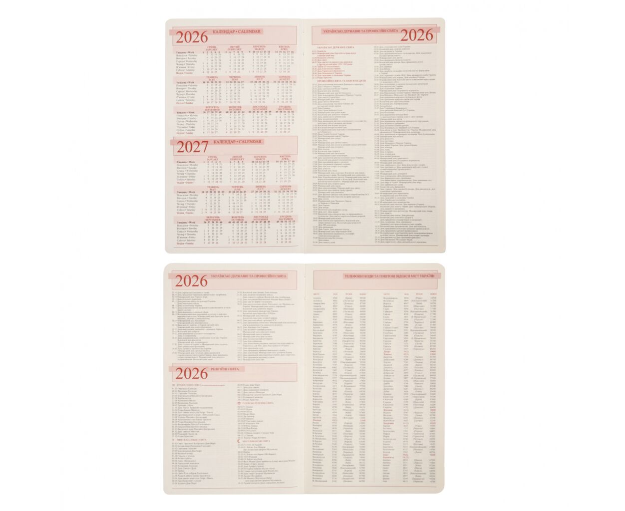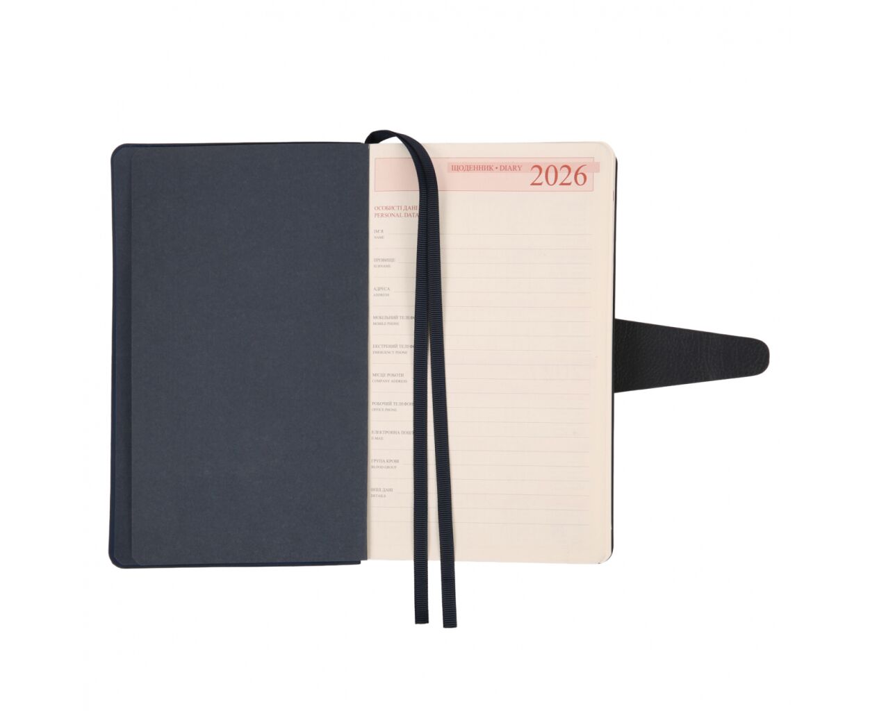 датированный, 12х20, количество листов - 352, 80 г/м², цвет бумаги - кремовый, PU, Цвет - темно-синий, 21 х 29 см, 2026, украинский
