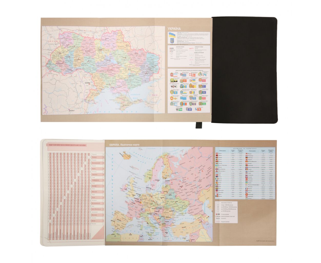 датированный, 12х20, количество листов - 352, 80 г/м², цвет бумаги - кремовый, PU, Цвет - черный, 21 х 29 см, 2026, украинский, английский