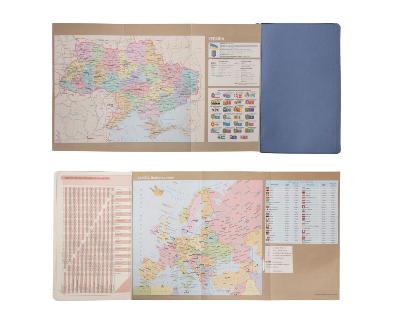 датированный, 12х20, количество листов - 352, 80 г/м², цвет бумаги - кремовый, PU, Цвет - голубой, 21 х 29 см, 2026, украинский, английский