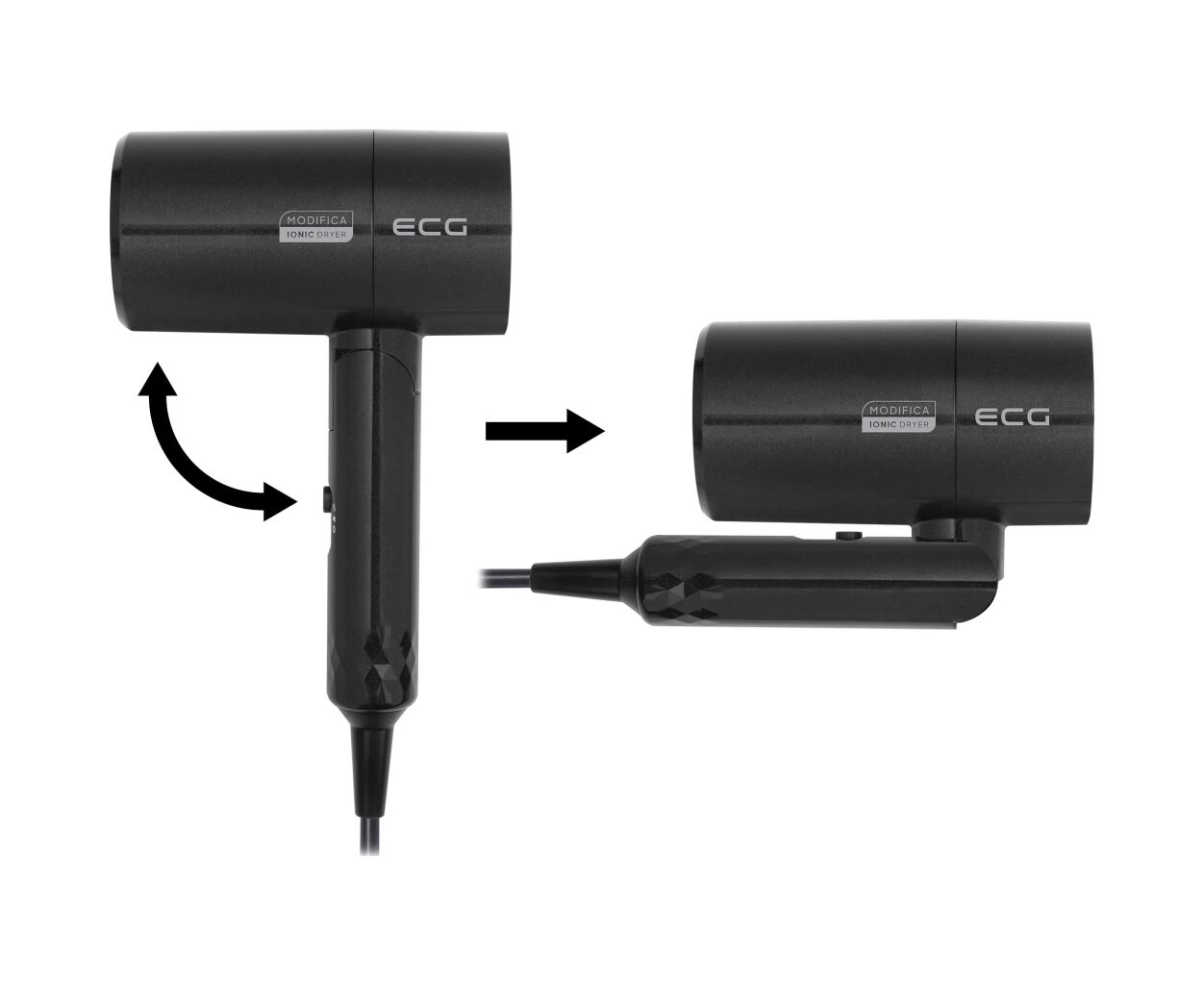 Фен ECG Modifica Nera – это компактное дорожное устройство с элегантным черным дизайном, созданное для удобного и эффективного ухода за волосами. Благодаря своему классическому размеру и легкому весу он гарантирует комфортное использование. Модель оснащена практичной складной ручкой, что делает его удобным для хранения и перевозки во время путешествий.